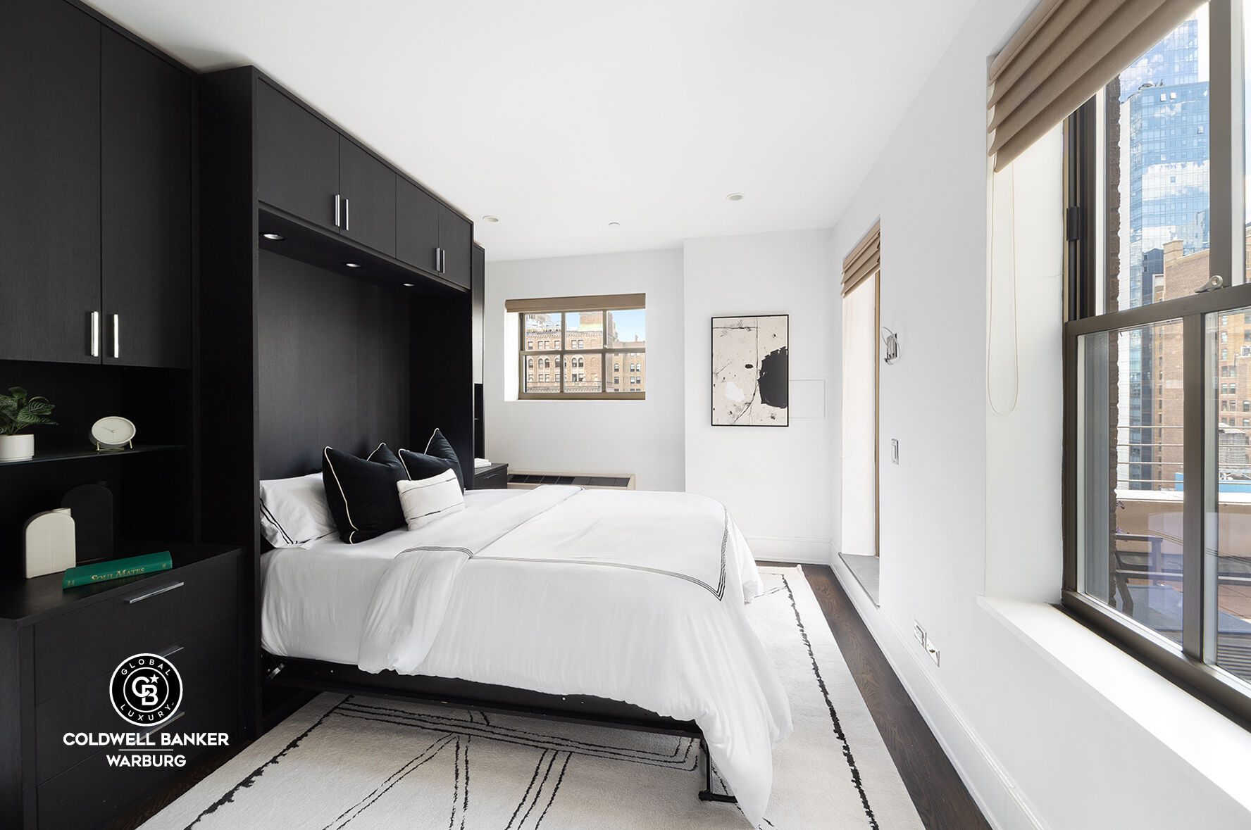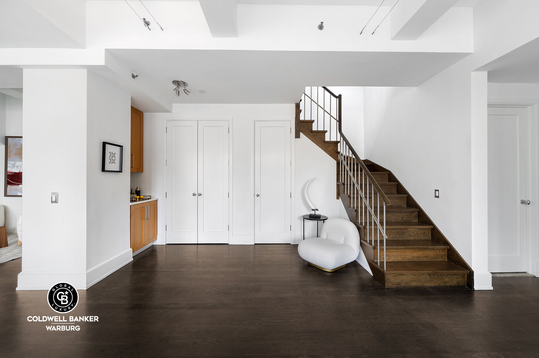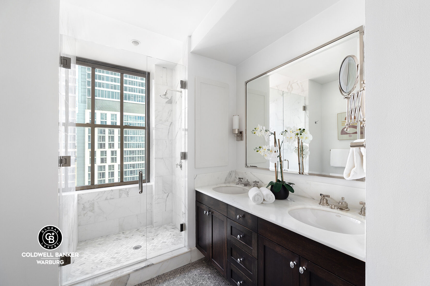 This expansive residence, spread across the 19th and 20th floors, offers nearly 3,000 square feet of luxury living. The home features 11-foot beamed ceilings and exposures to the north, south, and east, filling it with natural light. The primary suite includes a corner bedroom, central air, a state-of-the-art lighting system, in-unit washer/dryer, abundant closet space, and a charming terrace with northward city views. The 45-foot living and dining area is lined with a wall of north-facing windows, creating a perfect space for entertaining. A spacious chef's kitchen complements the layout with custom white oak cabinetry, Calacatta marble finishes, a dining island, and high-end stainless steel appliances, including a Sub-Zero refrigerator, Viking stove, Miele dishwasher, and a wine fridge.