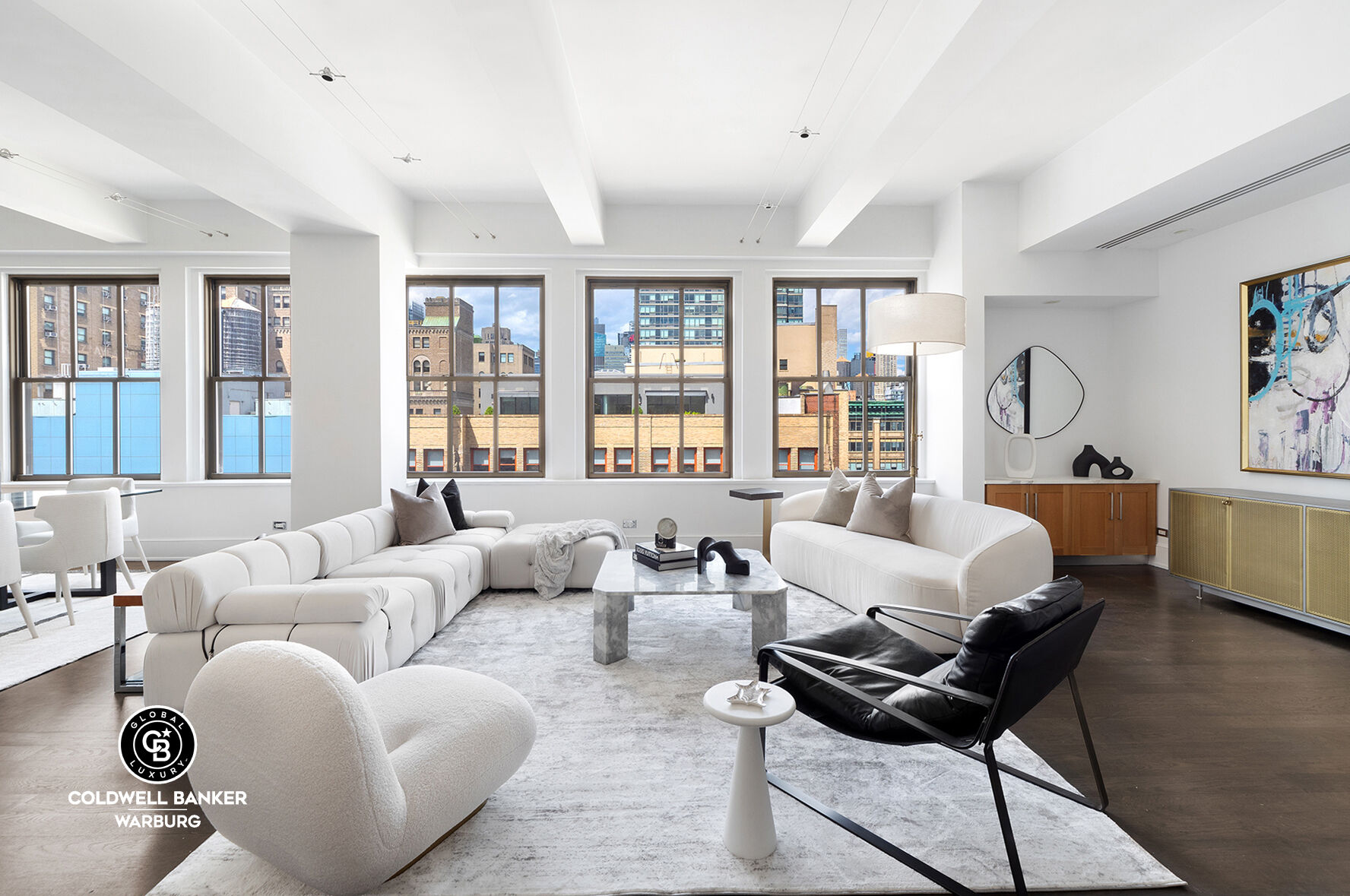 Penthouse A at 130 West 30th Street, located in the landmarked Cass Gilbert condominium in Chelsea, is an exquisite 3-bedroom, 3.5-bath duplex with loft-like features and a 280 sq ft private terrace.