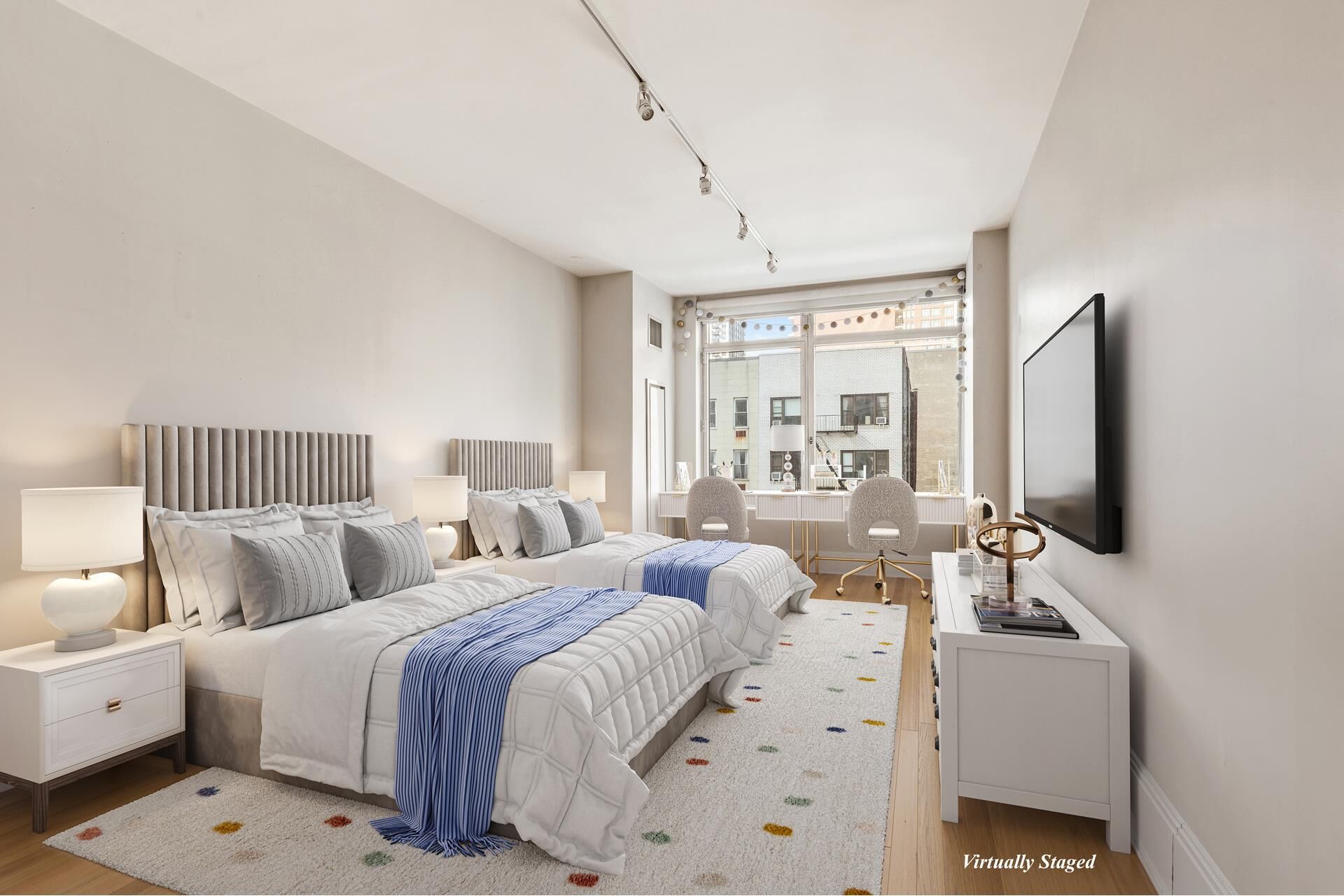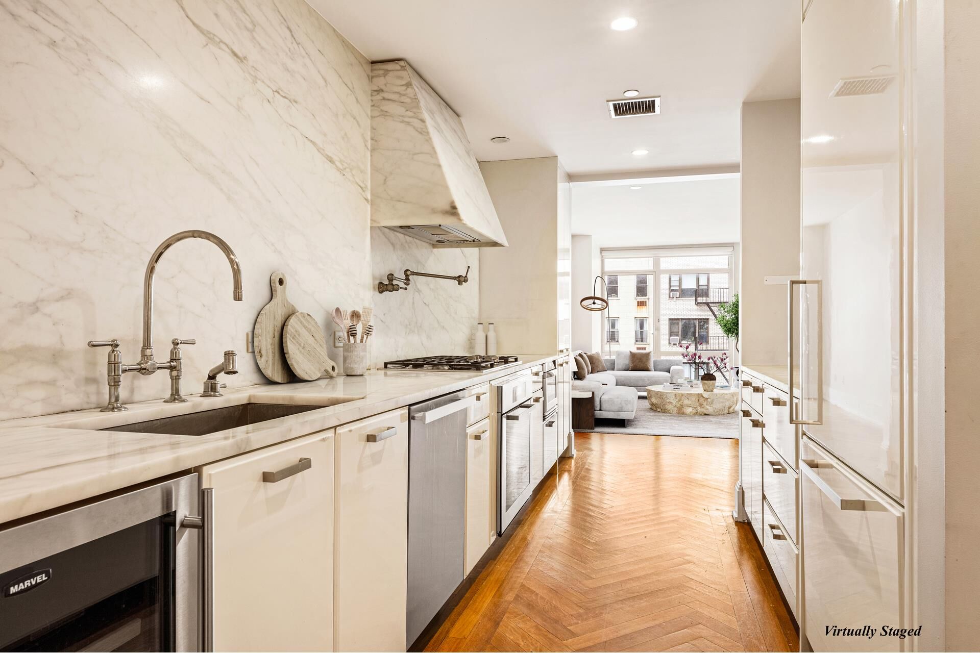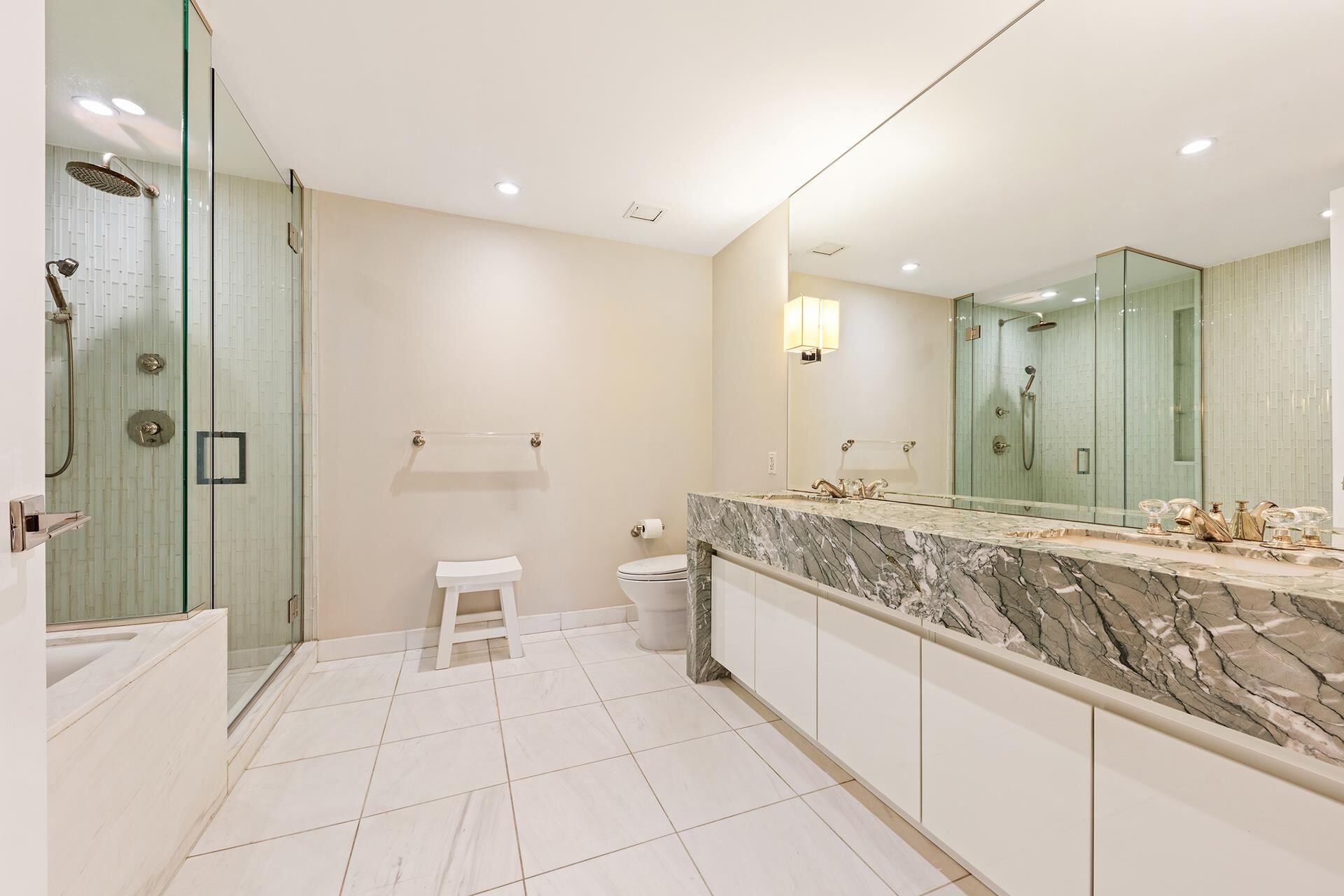 The enormous primary suite boasts 3 walk-in closets, a dressing room which can double as a home office and an exquisite marble bathroom with a spa style tub, stall shower and radiant heated floors. The secondary bedrooms are generous in size with en-suite bathrooms. The apartment features a beautiful granite powder room and a separate laundry room.