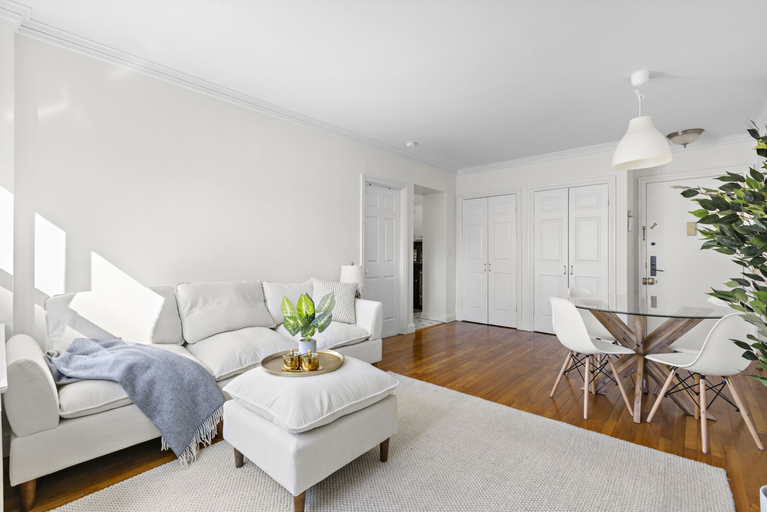 Move right into this sun-drenched, corner one-bedroom in the highly sought-after Chesterfield Condominium. This premier one-bedroom line offers a king-size bedroom, a generous open-concept living and dining area, excellent closet space, and hardwood floors throughout. Oversized west-facing windows flood the home with natural light.