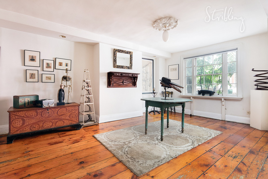 Charming Brick townhouse on historic cobblestone Brooklyn Heights Street. Originally owned in the 19th century by merchant George Bent, subsequent owners have meticulously preserved the wide plank floors and two working fireplaces. The first floor includes a spacious front room, eat in kitchen and access to the garden. The floor above has a sunfilled living room with street views, a garden facing bedroom and full bath. The top floor comprises two bedrooms, including the master, as well as a laundry room and bath. Currently used as a triplex and garden unit, this can be easily combined with the upper three floors.