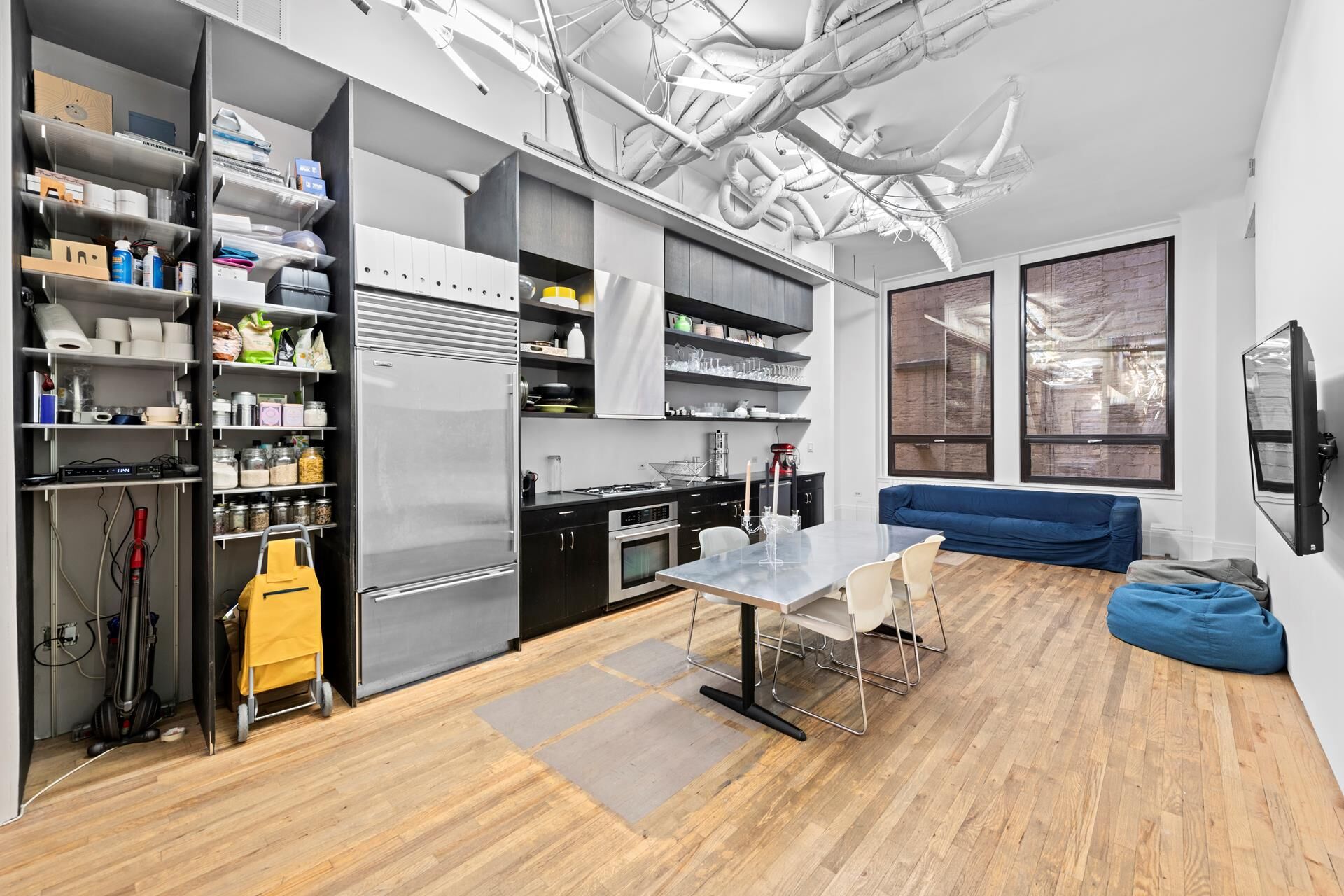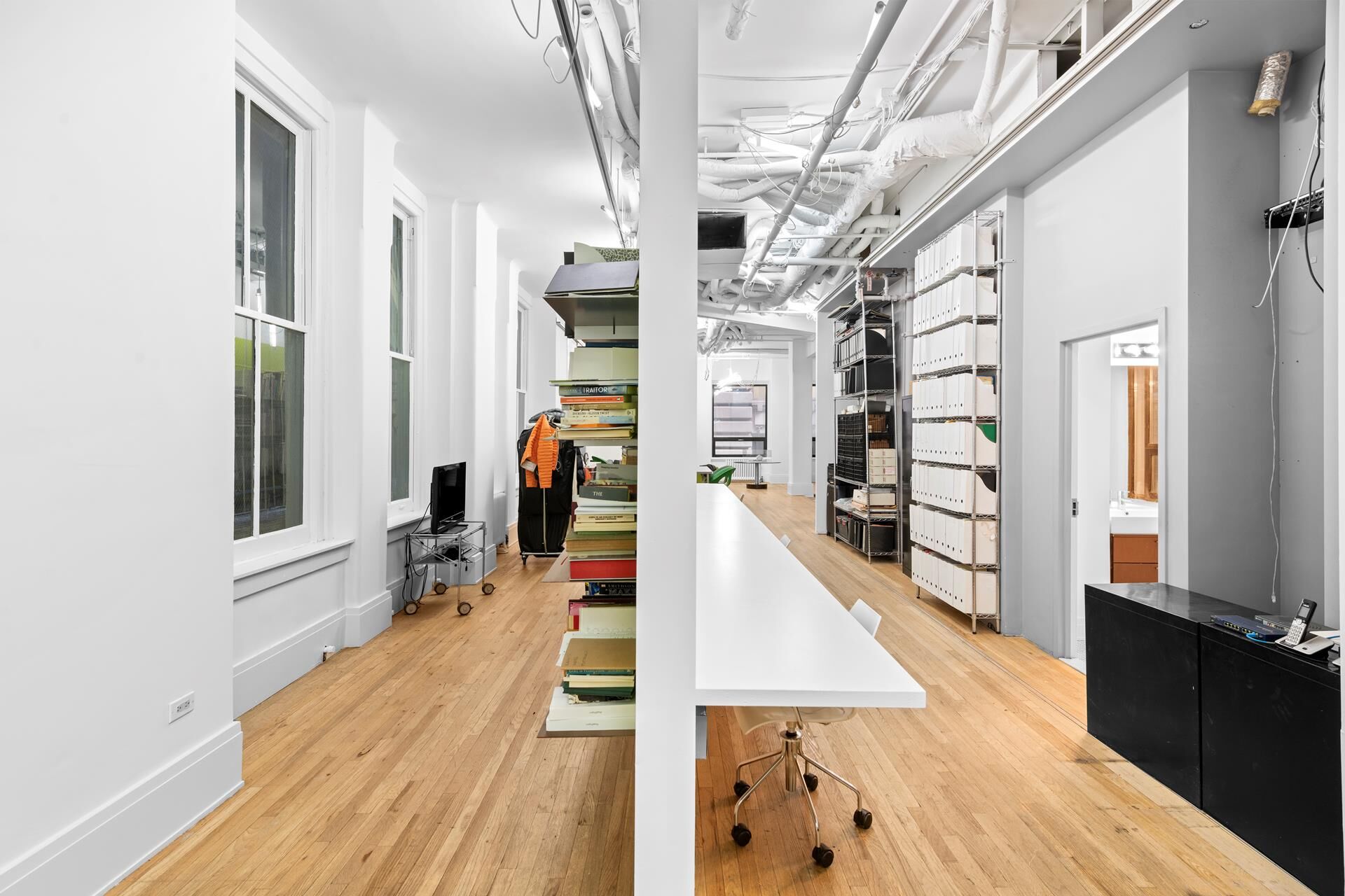 Currently configured as a classic 3 bedroom, 3 bathroom, live/work full-floor loft with soaring 12'+ ceilings and an abundance of prewar details. This expansive loft offers endless possibilities with its north, south, and east-facing windows and the absence of interior structural walls, allowing for design flexibility. Photos are virtually staged.