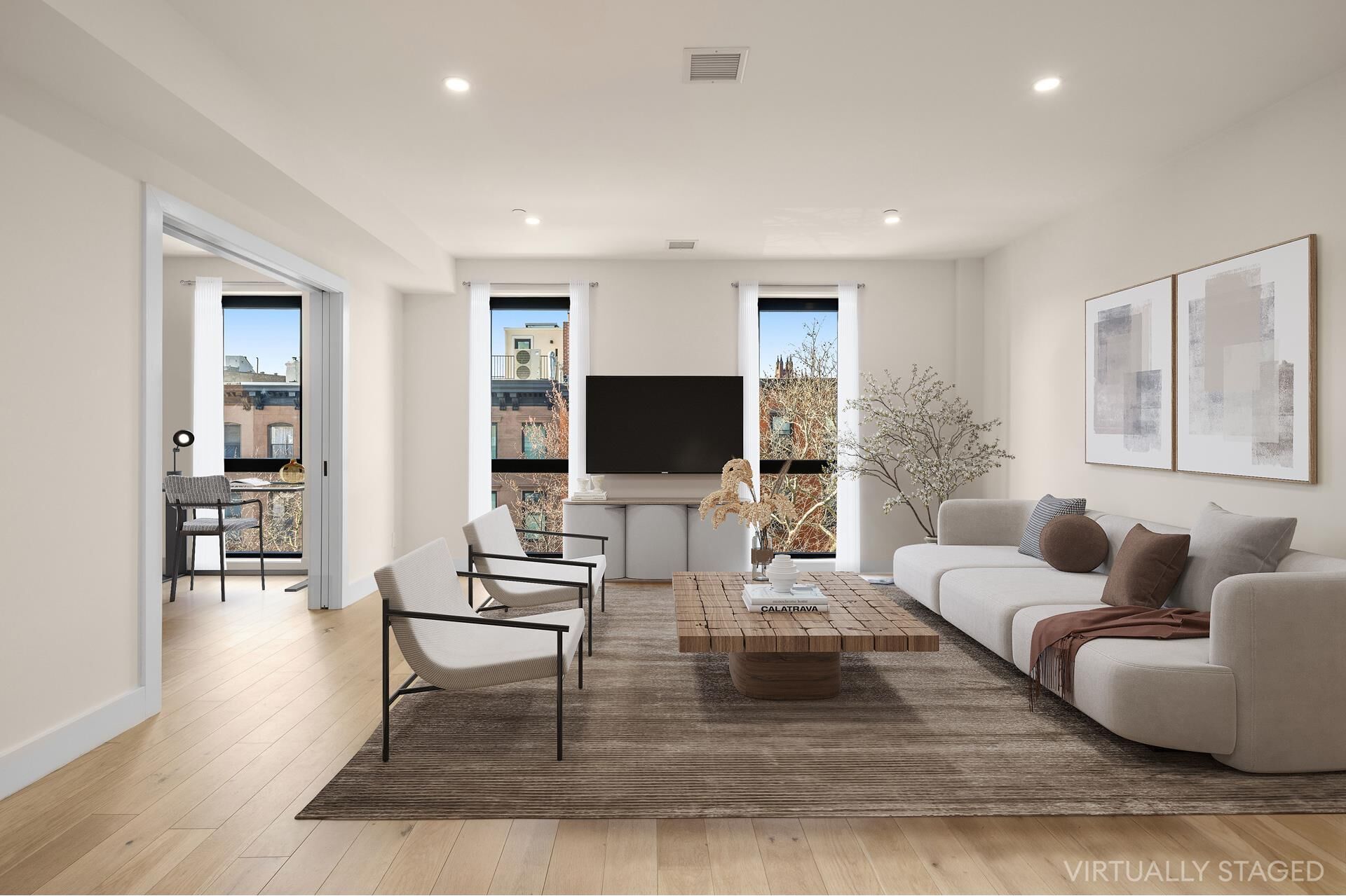 Spanning over 2,400 square feet in total, designer interiors and an enormous private roof deck await in this radiant three-bedroom, two-bathroom condo located on one of Cobble Hill's most serene tree-lined blocks. On the market for the first time: Residence 4 at 301 DeGraw Street.