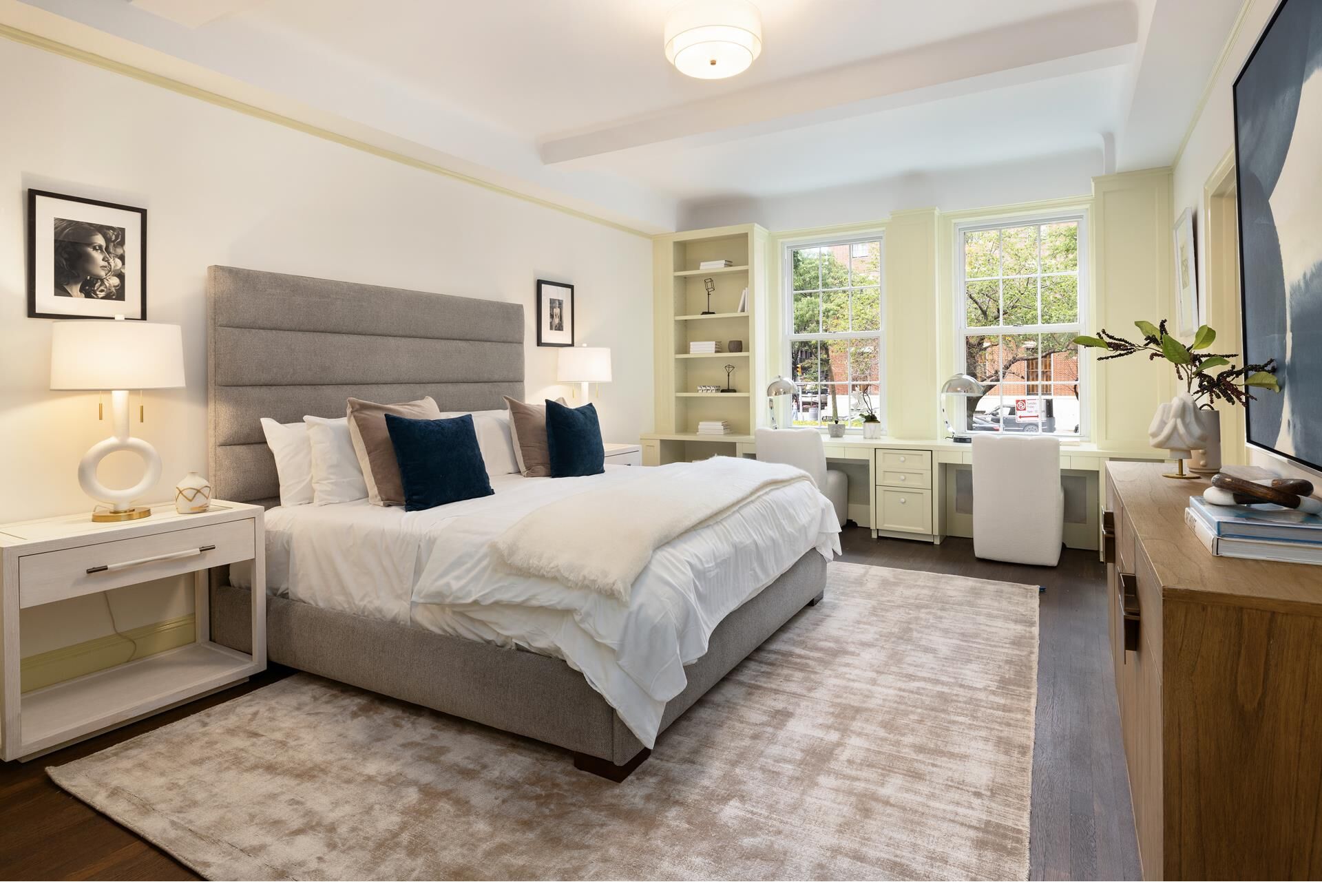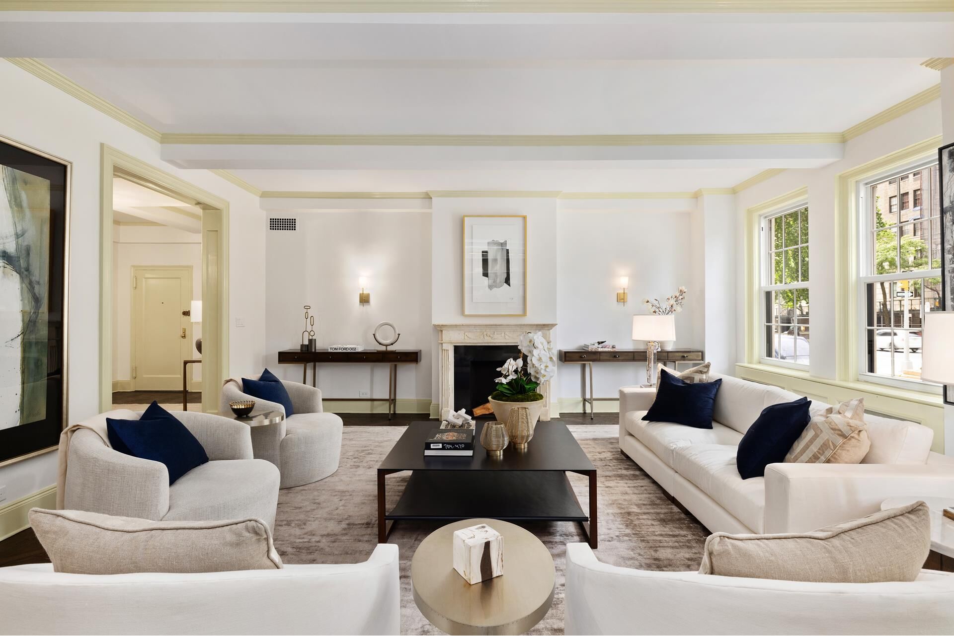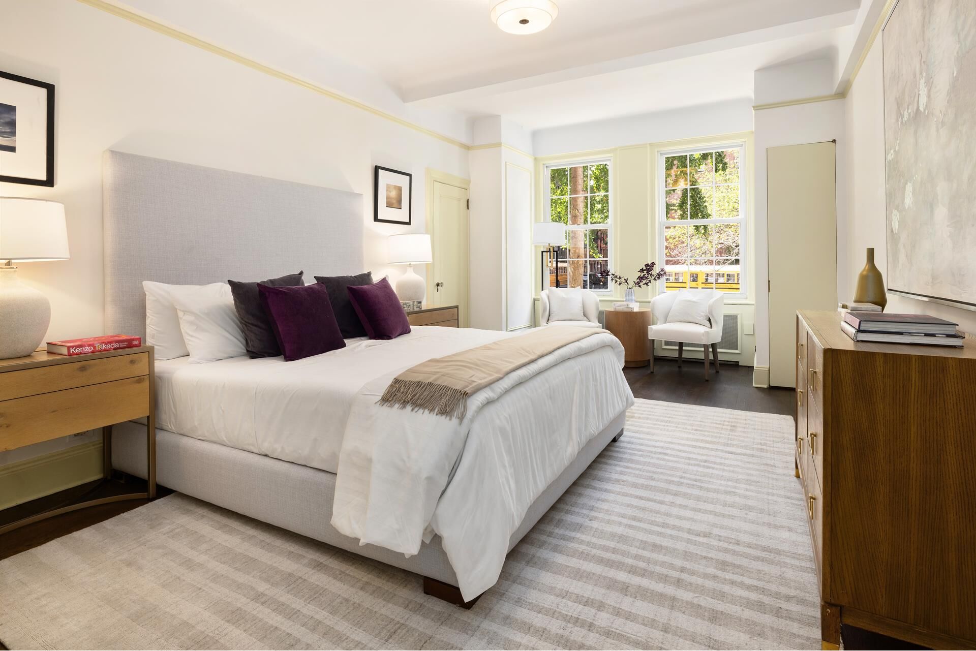Down the hall you'll find the large primary bedroom that has equally stunning views of Park Avenue, a walk-in closet as well as a second closet, and an en-suite bathroom. The second bedroom also faces the gardens of Park Ave, is generously proportioned and has an en-suite bathroom. Other features of this home include central air conditioning, an abundance of storage space, large windows and stunning floors and moldings throughout.