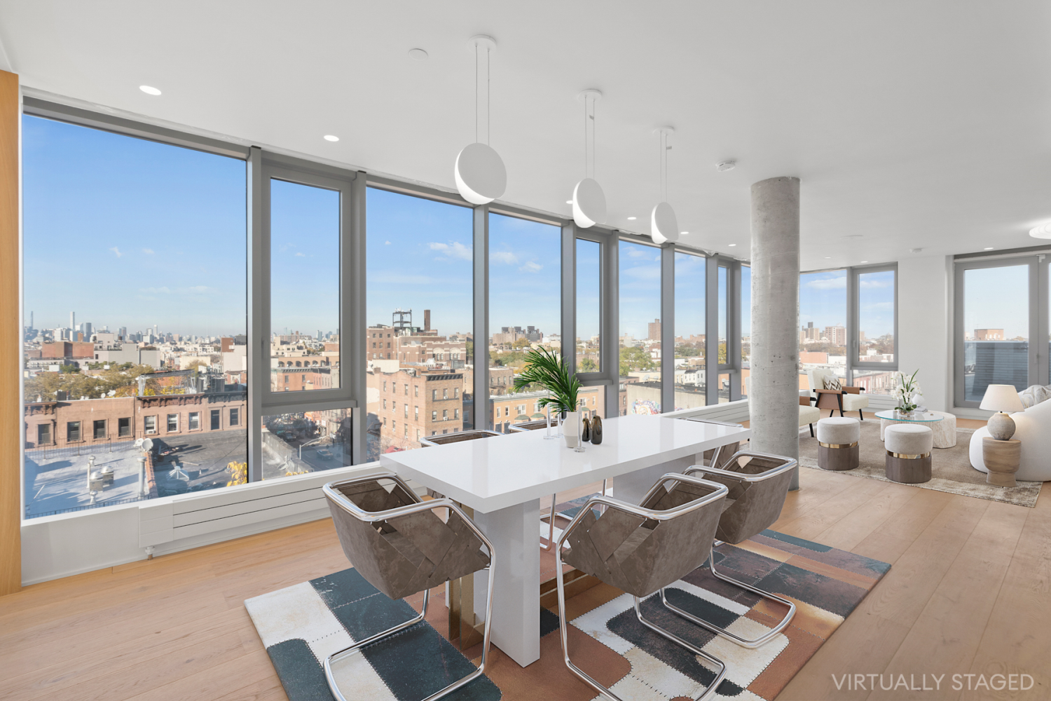 Welcome to Penthouse A a once in a lifetime 6 bed 3 bath Loft in the heart of Bedford Stuyvesant. This top floor Apartment has oversized glass windows with 360 Degree views of the city skyline equipped with remote motorized blinds.