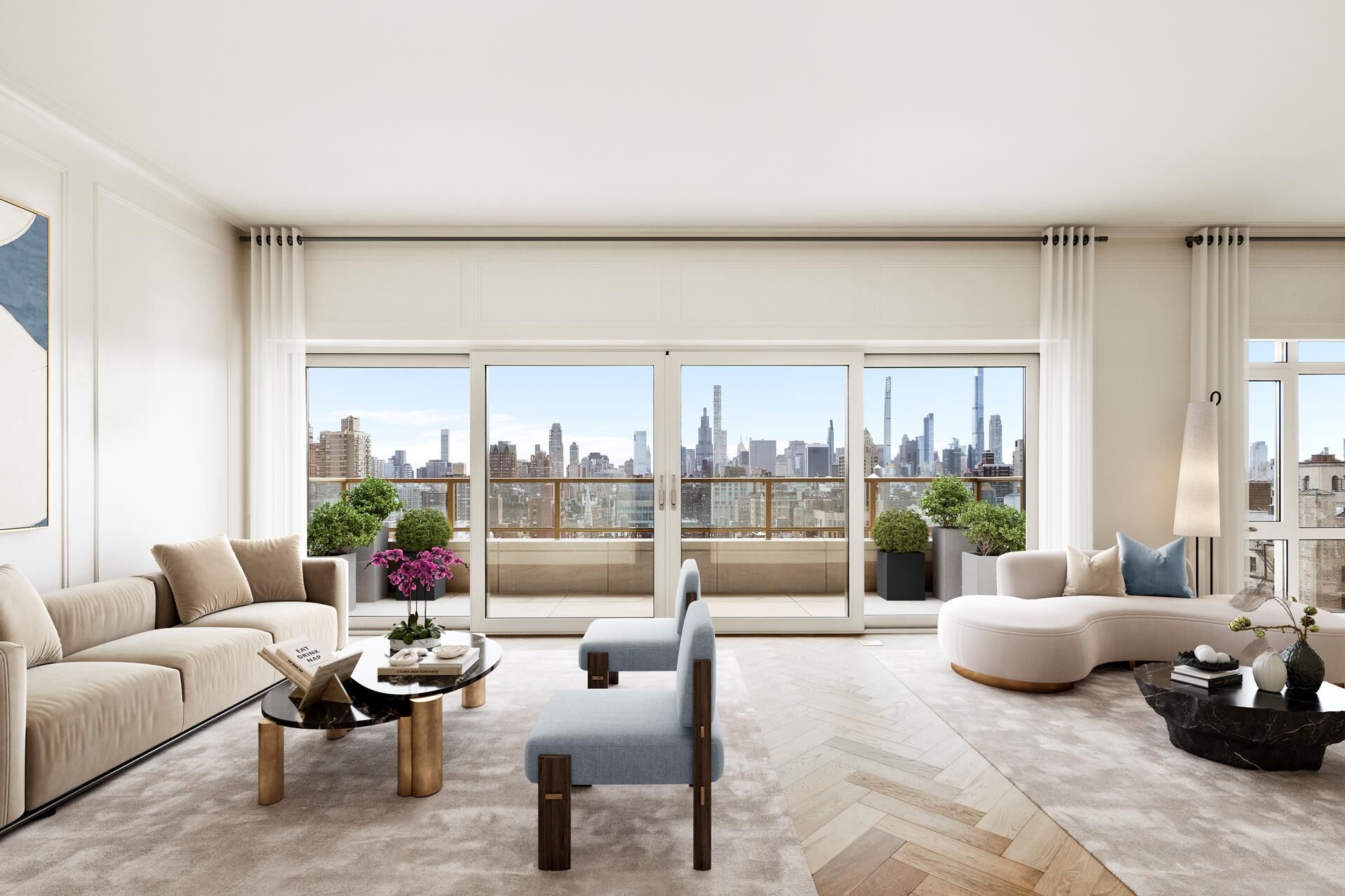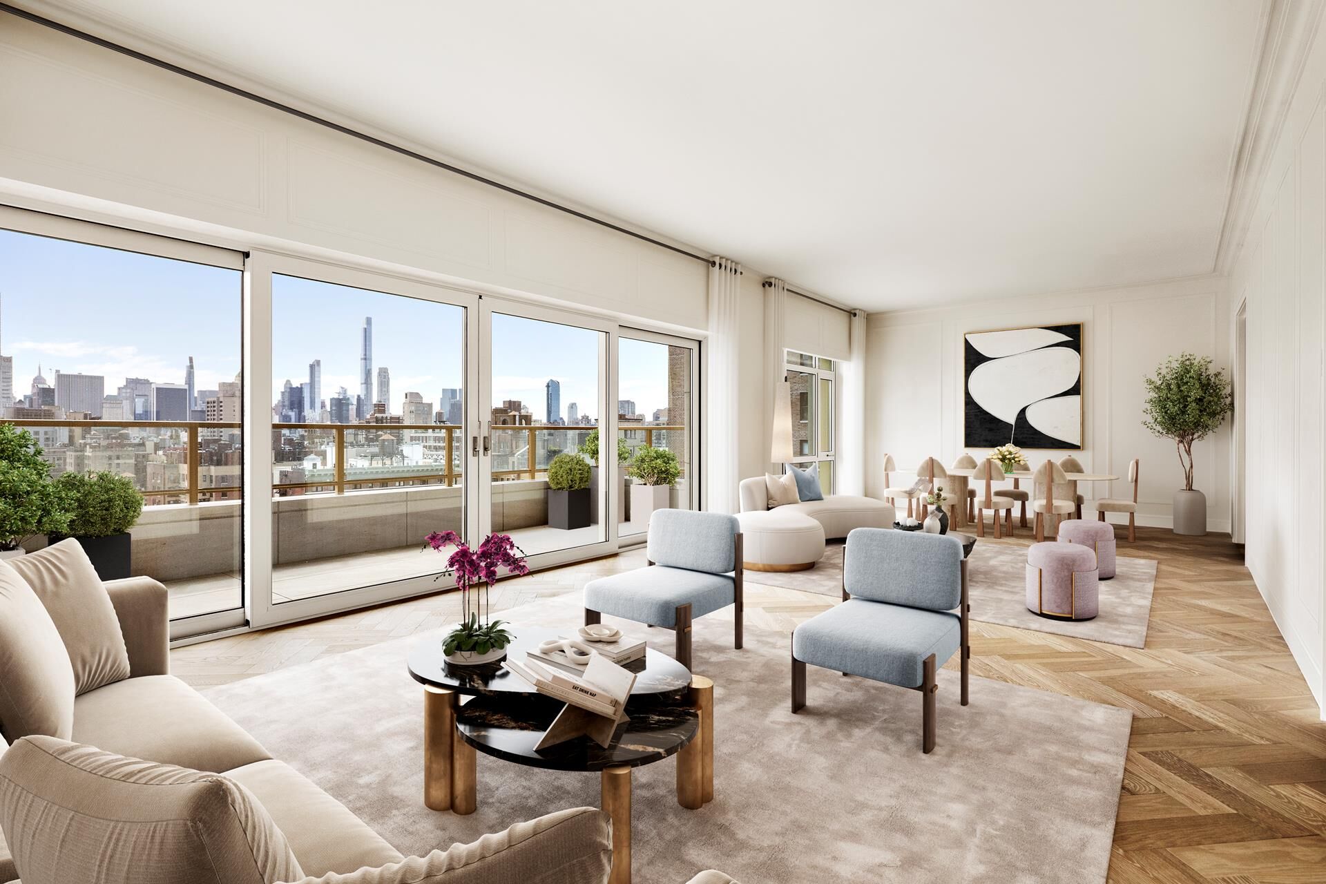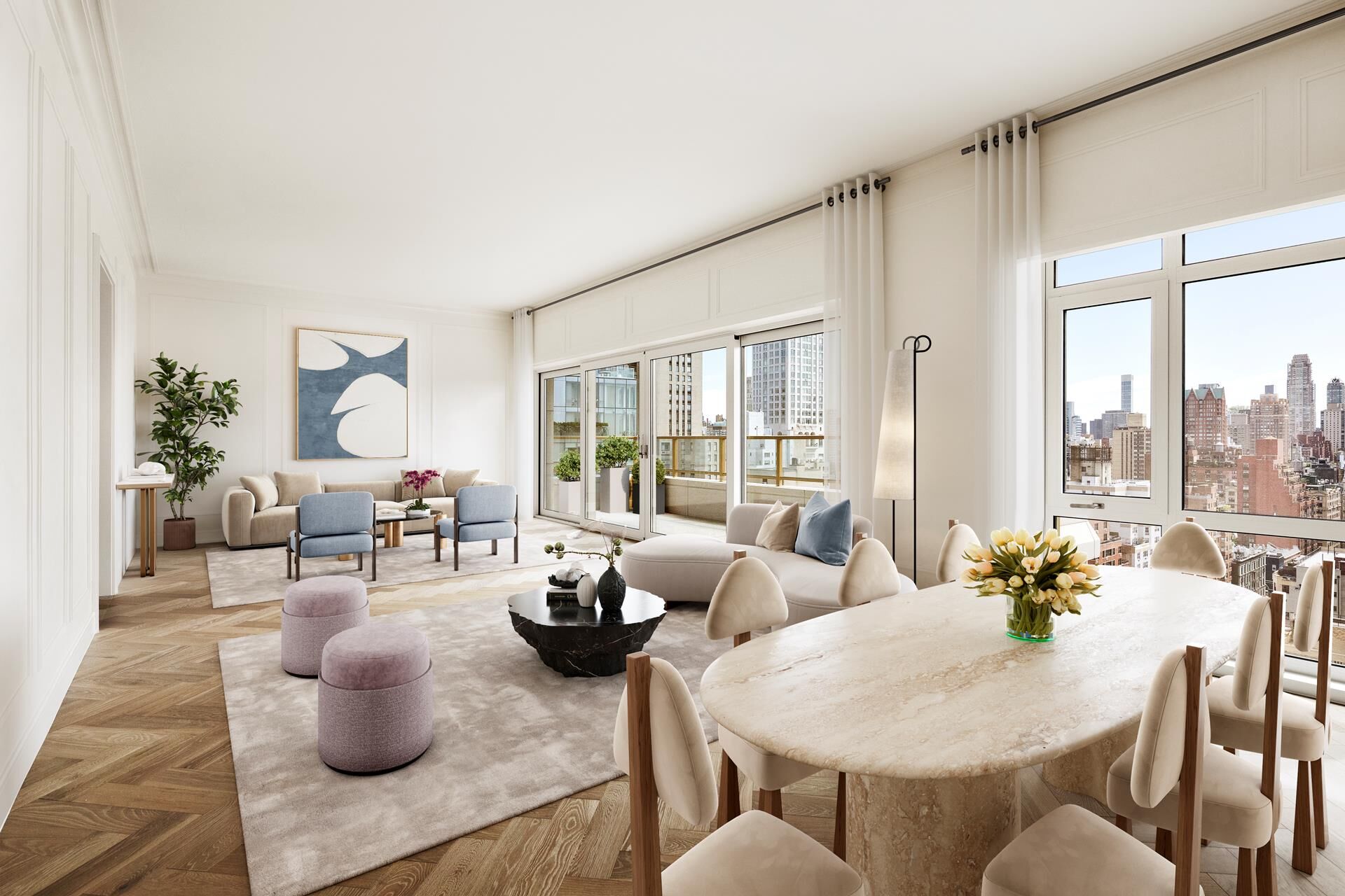 Welcome to Residence 19A at 126 East 86th Street, a premier full-floor, four-bedroom, three-and-one-half-bathroom home offering 318 square feet of private outdoor space across two expansive terraces. This gracious 2,762 square foot home features White Oak herringbone floors, picture moldings, and triple-glazed, oversized windows.