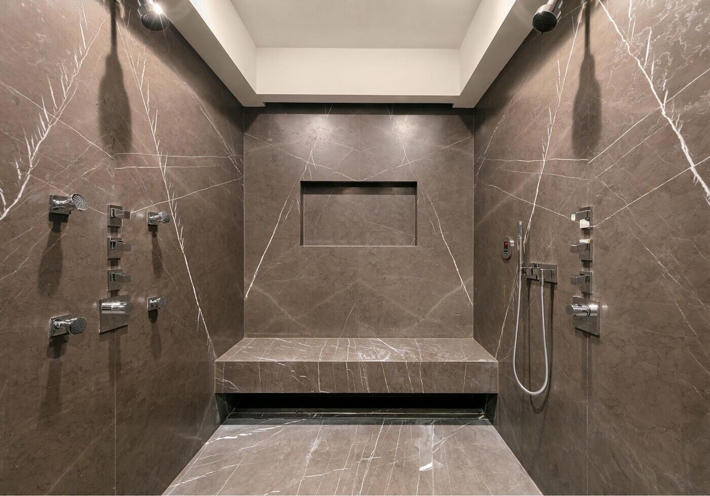 With three oversize marble bathrooms and an additional half bath, this residence exudes sophistication and comfort.