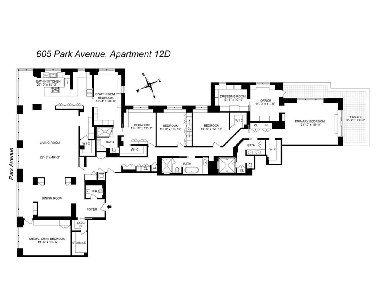 It truly is a home that seems to float above the bustling heart of Park Avenue, offering a rare blend of elegance, space, and luxury. 12B at 605 Park Avenue boasts 75" of Direct Park Avenue Frontage.