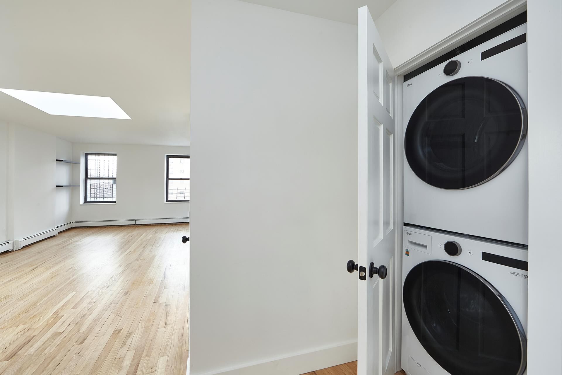 This GENEROUS One Bedroom rental was thoughtfully designed and filled with lots of extras not to mention all the natural light. A sophisticated top floor unit is sophisticated with a wonderful remote able skylight. Never saw one like this beauty. It's like having a seventh window! The bold and confident living space will easily accommodate a DINING area and office space as well! Yes BOTH.. because the living space has great depth. Just spread out and RELAX!