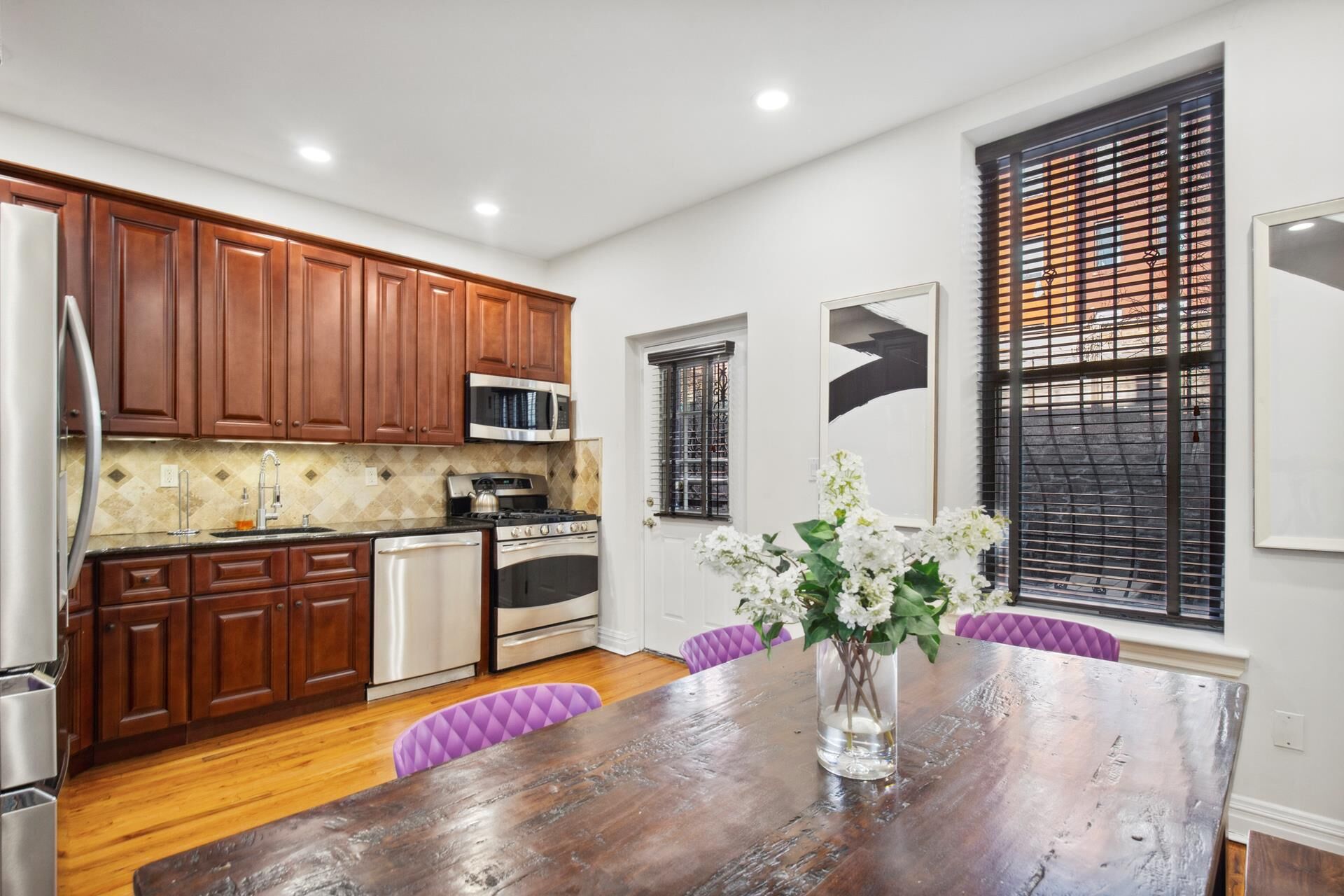 - Stylish new kitchen featuring stainless steel appliances, a dining area, pantry, and direct backyard access-ideal for outdoor gatherings or a private garden retreat
