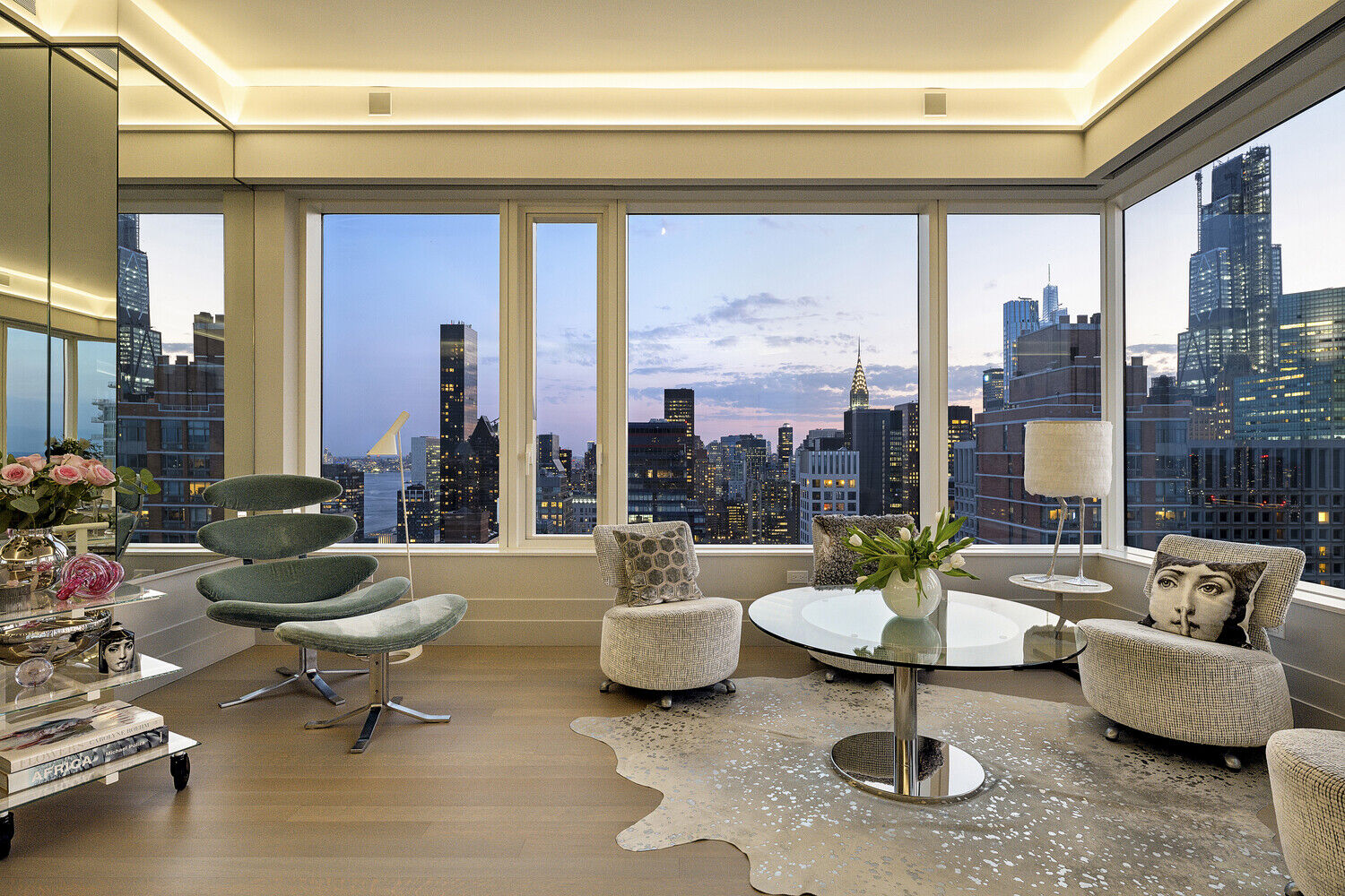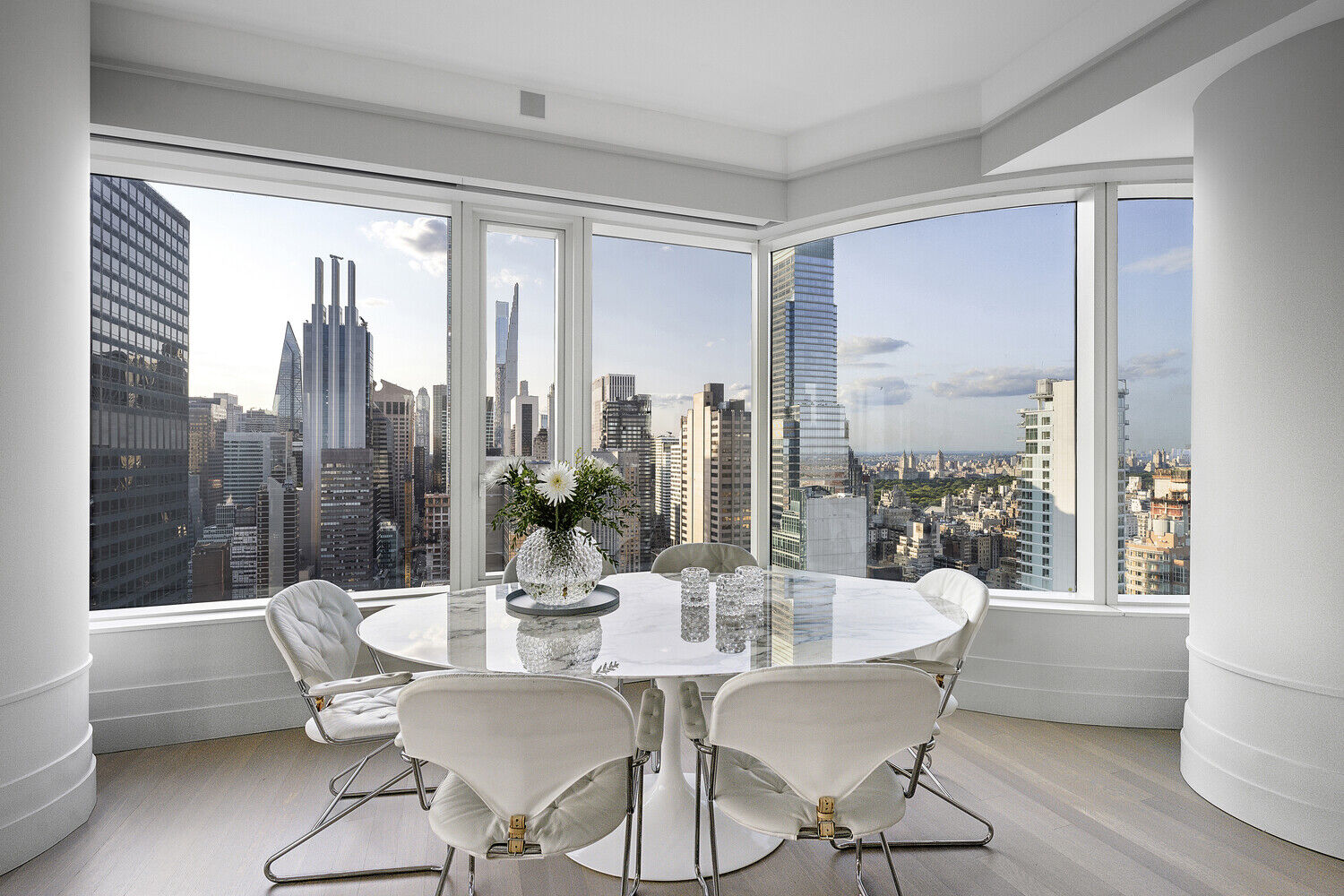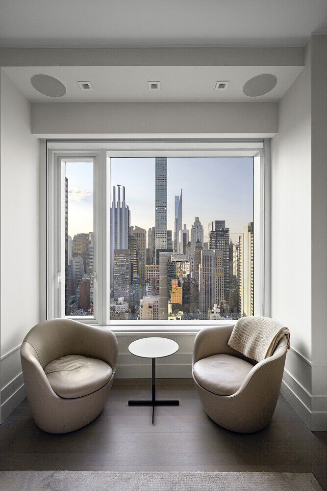 Step inside the great room and you are welcomed by a vast open-concept living space with white oak hardwood floors and 10-foot ceilings throughout. The custom kitchen designed by world-renowned Daniel Romualdez and Eggersman features a full suite of Miele appliances and vein-matched wood cabinetry. Whether you enjoy your morning coffee at the breakfast bar or an evening glass of wine watching the sunset over Central Park, this home is truly the ultimate relaxing escape from the bustling city below.