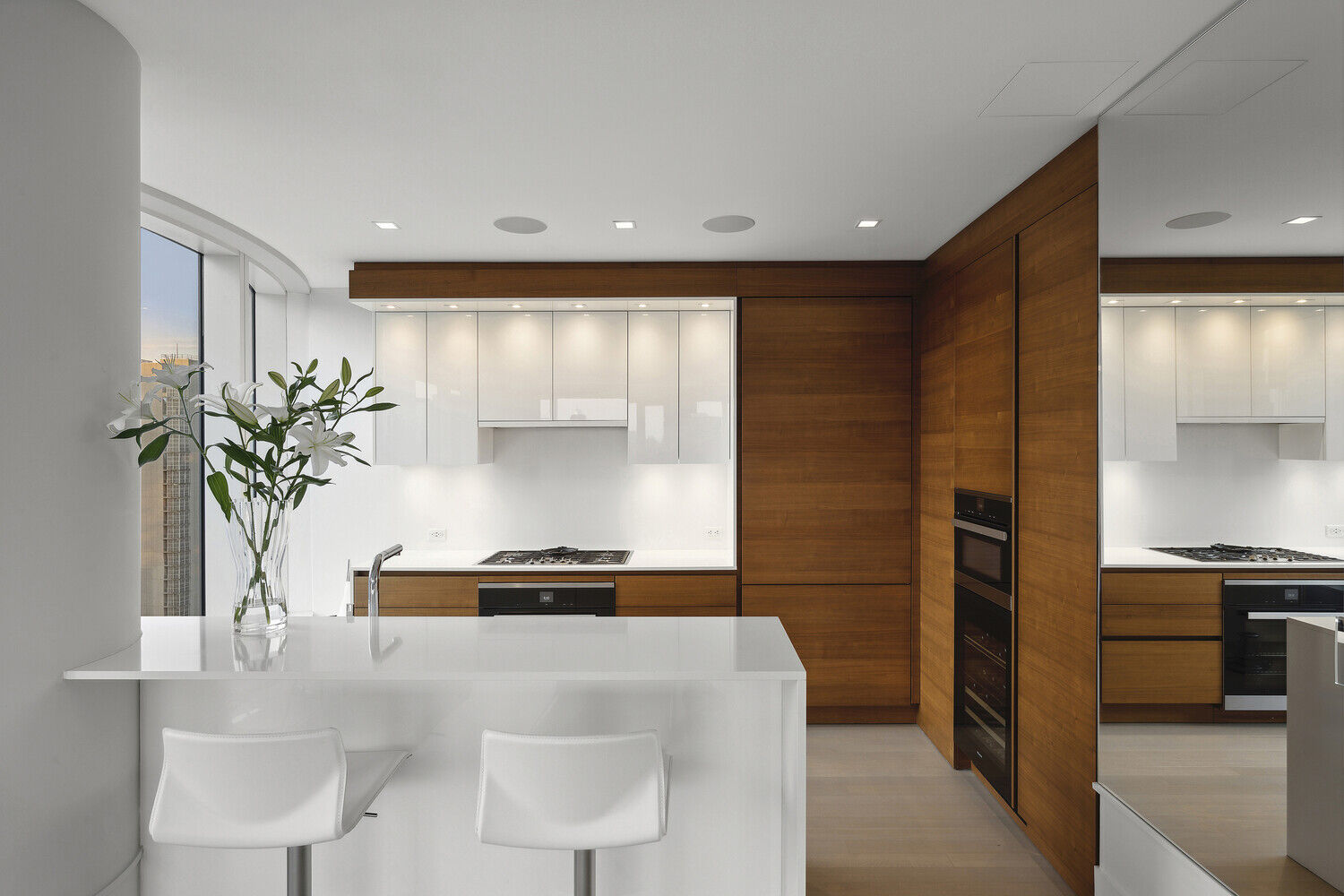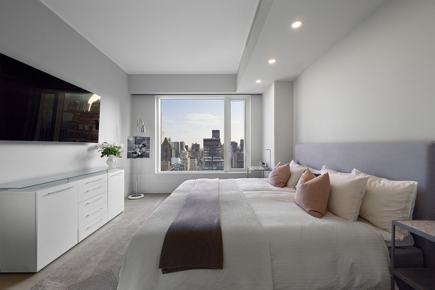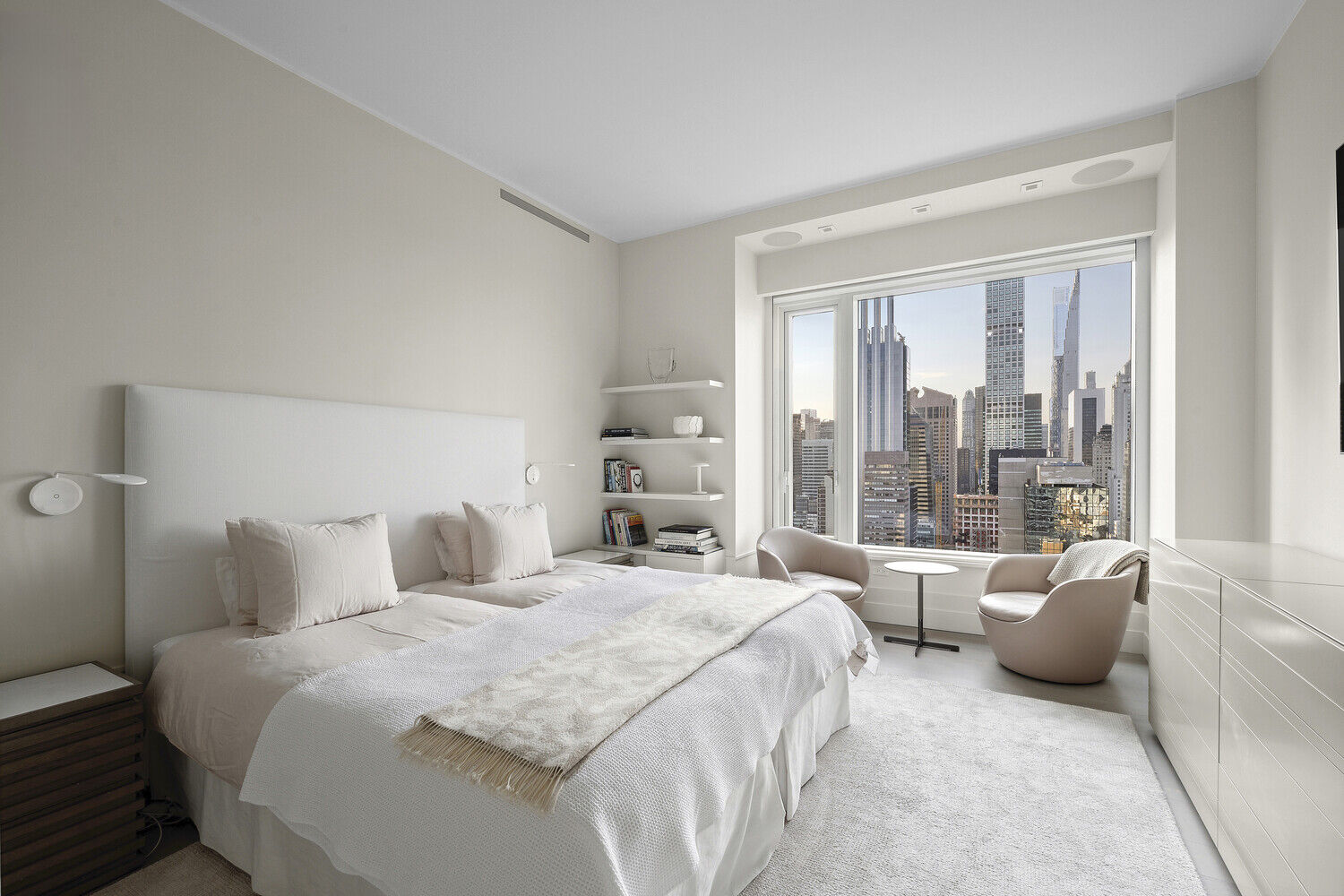 Step inside the great room and you are welcomed by a vast open-concept living space with white oak hardwood floors and 10-foot ceilings throughout. The custom kitchen designed by world-renowned Daniel Romualdez and Eggersman features a full suite of Miele appliances and vein-matched wood cabinetry. Whether you enjoy your morning coffee at the breakfast bar or an evening glass of wine watching the sunset over Central Park, this home is truly the ultimate relaxing escape from the bustling city below.