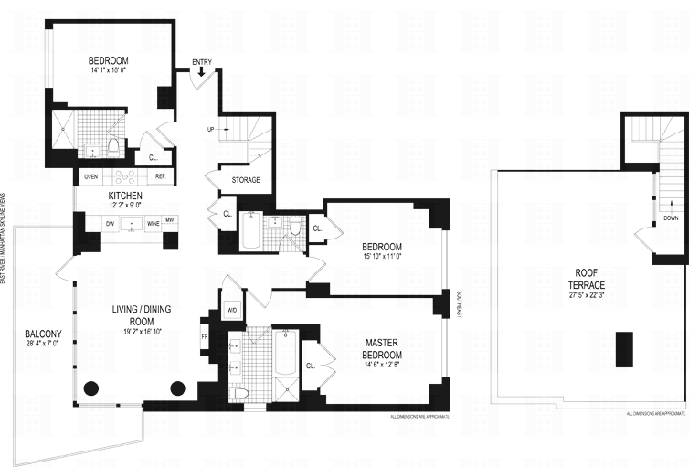 Welcome to Penthouse 4G at The Edge, luxury living at its finest boasting the most impressive views of Manhattan and Brooklyn imaginable. The 1,596 square foot home offers three bedrooms and three bathrooms as well as 841 square foot of outdoor space between a large balcony off the living area and a private rooftop terrace. This incredible apartment is truly a one-of-a-kind and the ultimate Penthouse rental in Williamsburg. The Edge is arguably the best and most desirable building in Williamsburg and all of Brooklyn.