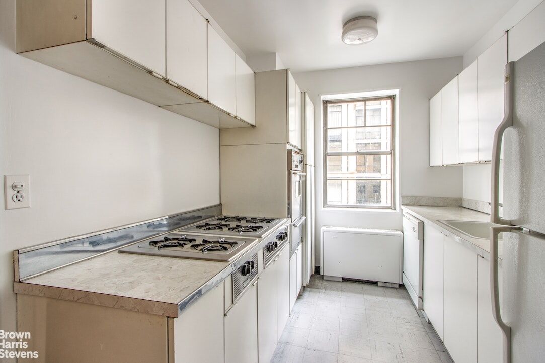 The windowed kitchen faces south and awaits your updates.