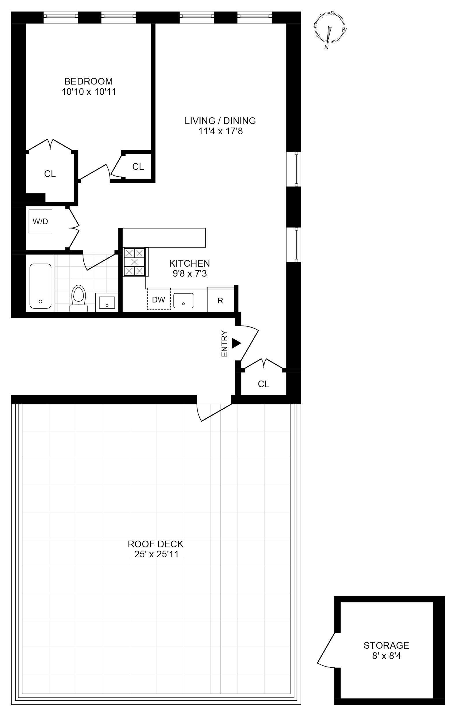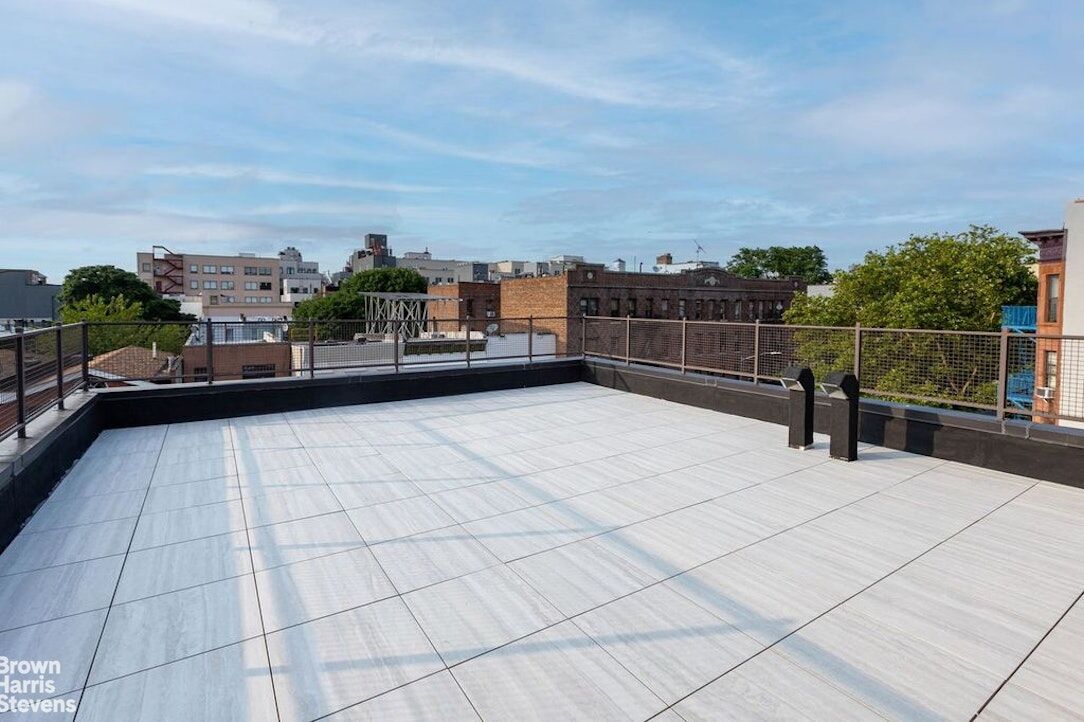 Live above it all in Residence 4. Located on the top floor with a private entrance to your 1400 sf suite. Enter into your private vestibule and the only apartment on this floor: to the left is a 700 sf one bed, one bath mint condo with south and west views on the interior. To the left of the same vestibule you will find your very own 648 sf private porcelain tiled terrace with the most amazing western sunset view. The sunset views are incredible from this rooftop complete with porcelain tiles, outdoor electric and lighting. Other amenities include: chef's kitchen, in-unit washer-drier, breakfast bar, 4 closets and 84 sf of locked storage in the sub seller, included. This unit is ready for a summer owner to move-in and host! Two blocks to the Gates J train, 15 minutes to the lower east side, 33 mins to Wall street and 45 mins to midtown. Do not wait, this will be gone.