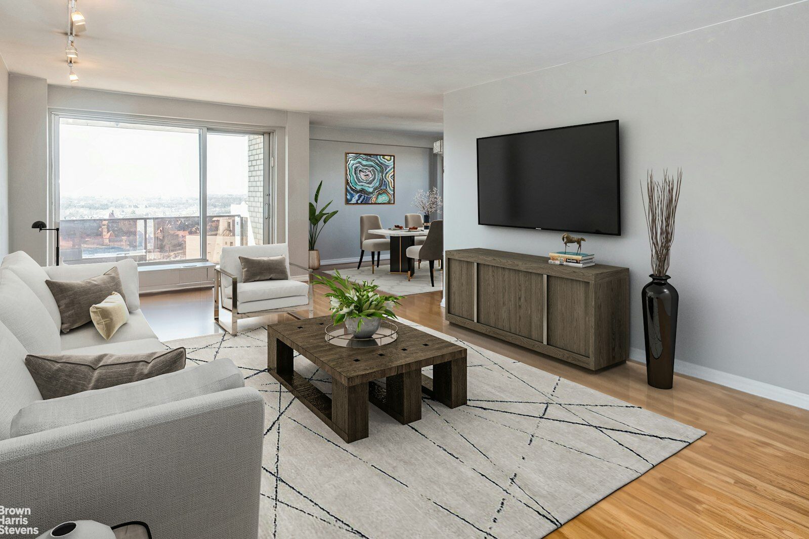 Great views of Manhattan from this 700 sq. ft. Kennedy House studio. Fully renovated kitchen and bathroom, oak floors, new baseboard molding. Luxury amenities abound: All utilities, taxes and gym included in maintenance (except cable/internet), 24-hour doorman and garage attendant, seasonal rooftop swimming pool, rooftop skyroom for parties and gatherings, no wait-list for spotless heated garage space with electric vehicle chargers. Children's playroom, private outdoor sitting area, spacious and immaculate laundry room. Extra storage available for nominal fee. Close to fabulous Forest Hills dining and shopping, E, F, M, and R subway and buses, LIRR station (15 minutes to Manhattan), and both NYC airports. A great opportunity!