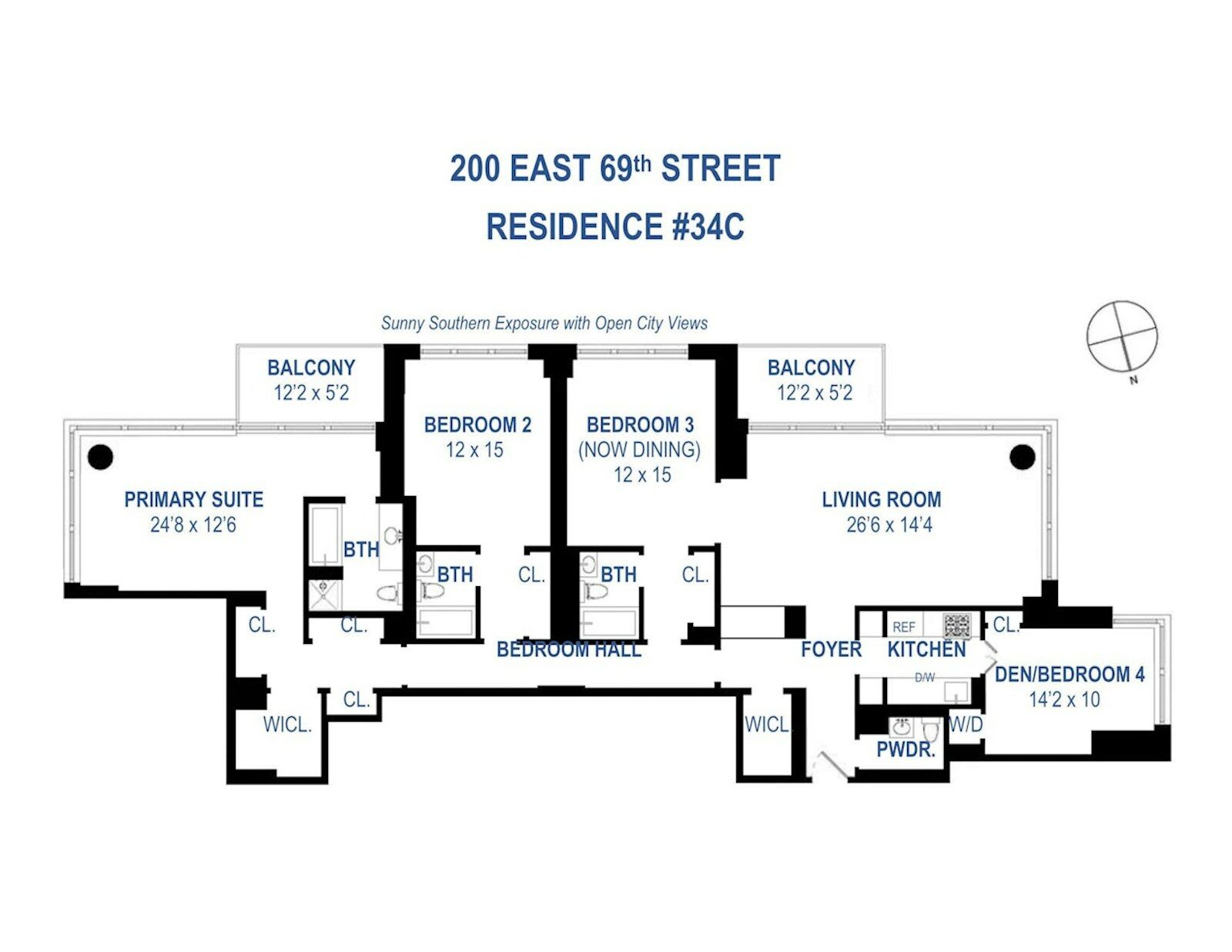 The spacious 1958SF layout has been thoughtfully designed for both elegance and functionality. The sun-drenched Living Room, anchored in the southwest corner, opens onto a private balcony with spectacular vistas of iconic Midtown landmarks and Central Park. Adjacent formal Dining Room (originally a Bedroom with en-suite Bath) provides an ideal setting for entertaining. Walk-thru kitchen features updated cabinetry and new stainless steel appliances. A sumptuous Primary Suite is basking in southeastern light, with its own private terrace. This oversized space includes a seating area, and could still accommodate a home office. The en-suite bath offers a spa-like experience with a soaking tub, separate shower, and marble vanity. Two additional well-appointed bedrooms feature en suite baths and generous closet space (one is currently configured as Dining Room). The kitchen offers new stainless steel appliances ample cabinetry. A "Bonus Room," off the kitchen has direct Central Park views and now features a washer/dryer. Oversized storage unit in the basement comes with the apartment.