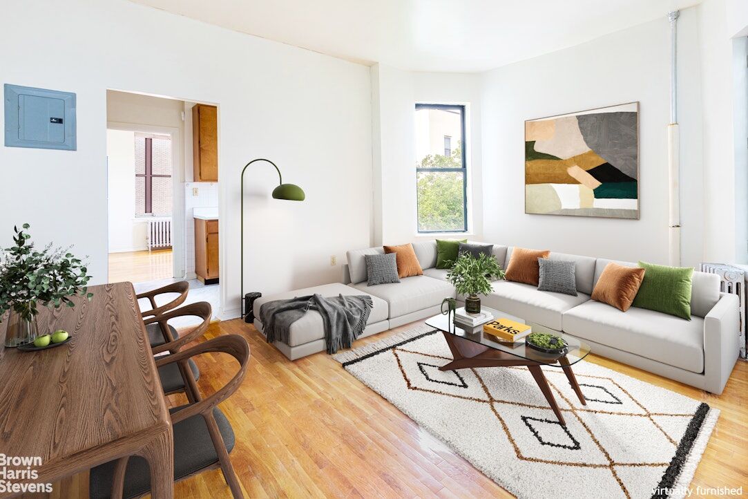 Welcome Home! With a remarkably low maintenance, you won't want to miss this spacious 1 bedroom / 1 bathroom apartment in prime Central Harlem! Quiet and inviting, the home boasts beautiful strip hardwood floors and tall over-9-foot ceilings that give the residence an airy, loft-like feel! The home's bathroom and spacious kitchen are both windowed, and the kitchen offers a W/D hookup! The bedroom flaunts dual exposures and beautiful natural light! Please note that this home is located on the 4th floor (three flights up) of a walk-up building.