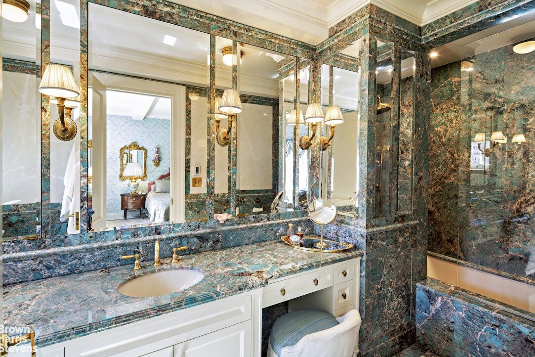 The sundrenched and pin-drop quiet southern wing of the floor includes three bedrooms and two stunning renovated marble windowed bathrooms. This wing of the home enjoys wonderful open views to the south and west, and again captures views of Central Park. There is also a full third bathroom off the gallery.