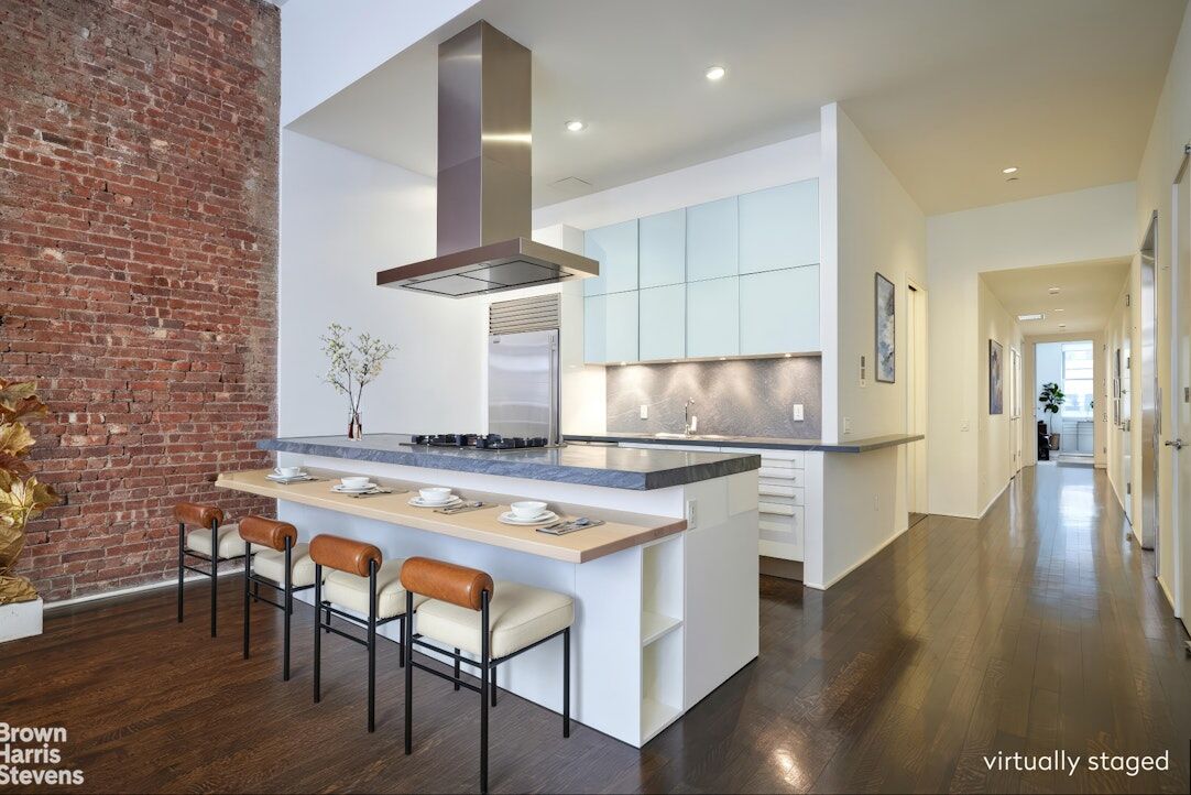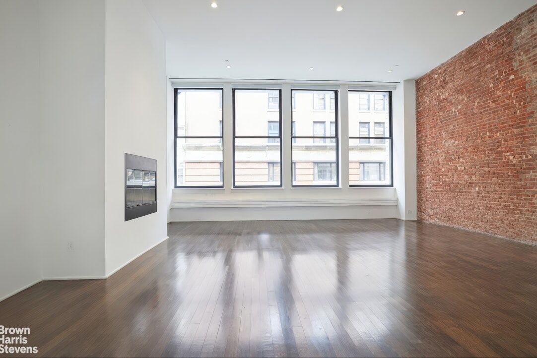 Enjoy soaring 13" ceilings in this 1,742sqft 2 bedroom, 2 bath Condo loft on one of SoHo's premiere cobblestone streets. The oversized square living room features an exposed brick wall, floating gas fireplace, 4 soaring windows overlooking Greene street, a spacious pantry, and is open to a well-appointed kitchen with Sub-Zero, Miele, and Fisher & Paykel stainless steel appliances.
