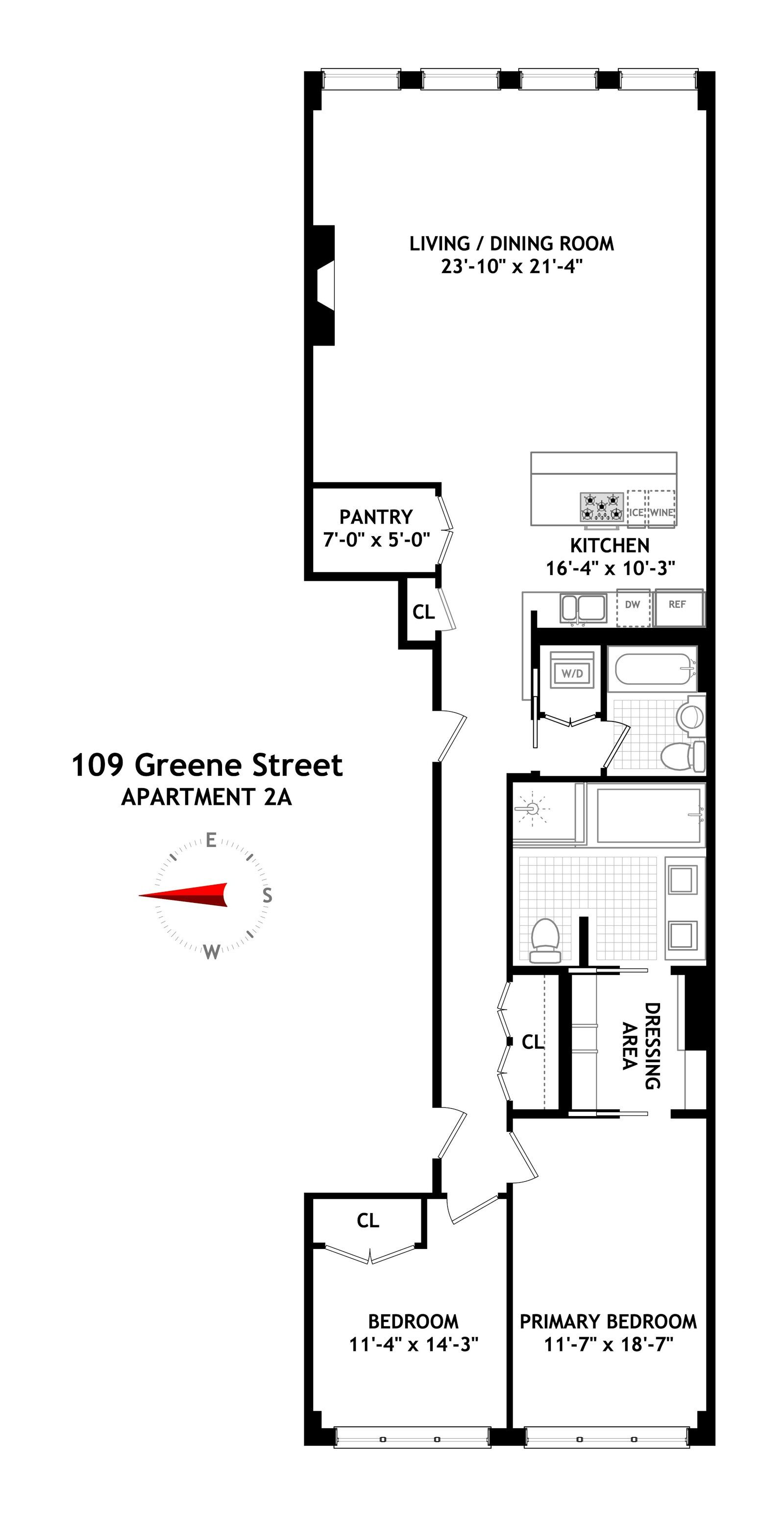 Apartment 2A comes with zoned central air and a storage unit in the basement. 109 Greene Street is a boutique condominium with a full-time doorman and keyed elevator access.