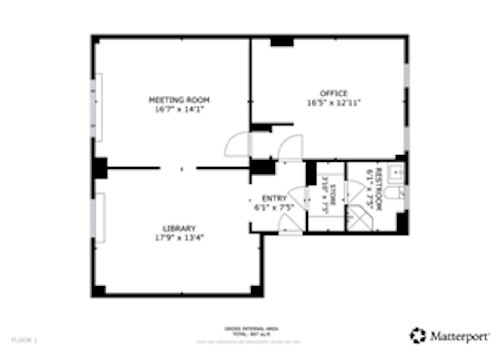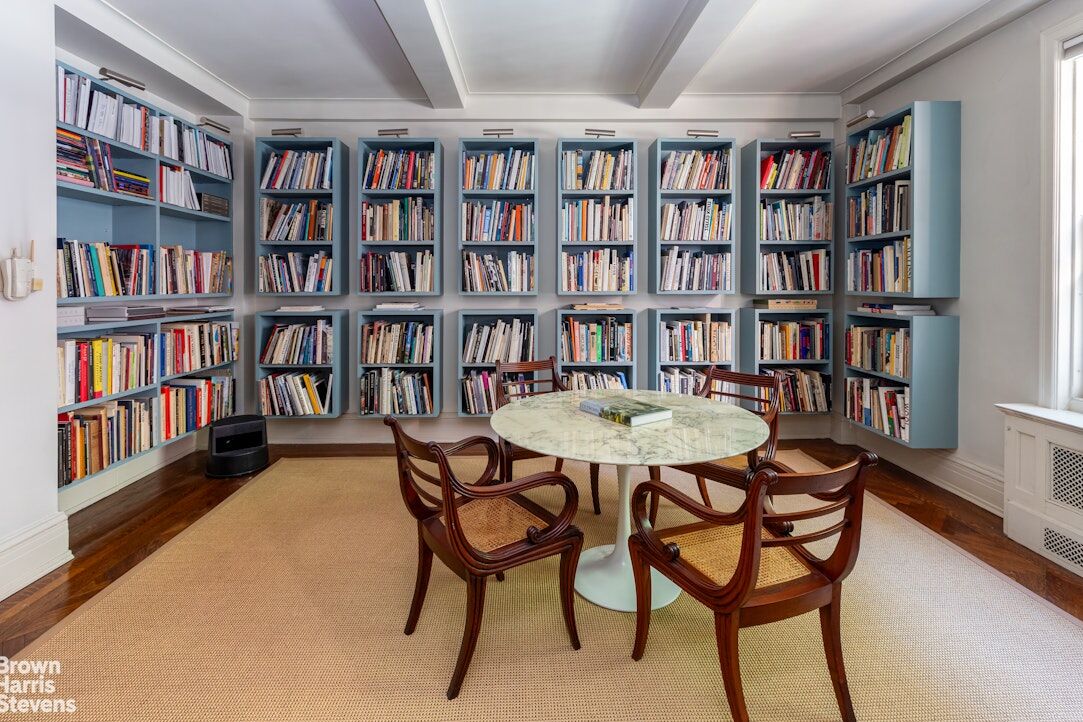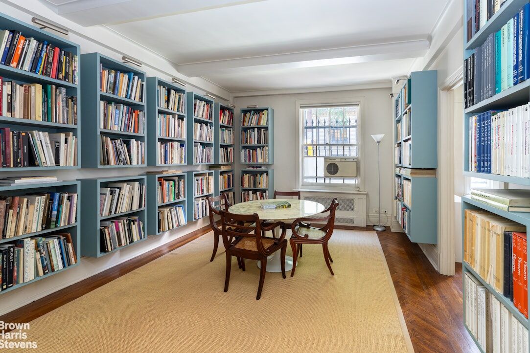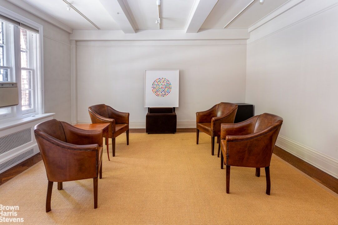 Located on the ground floor of a 10-story elevator building with a full-time doorman, the  office is currently configured to feature a library, a meeting room and an office/work space with a large bathroom. The rooms could be further subdivided for alternate uses.