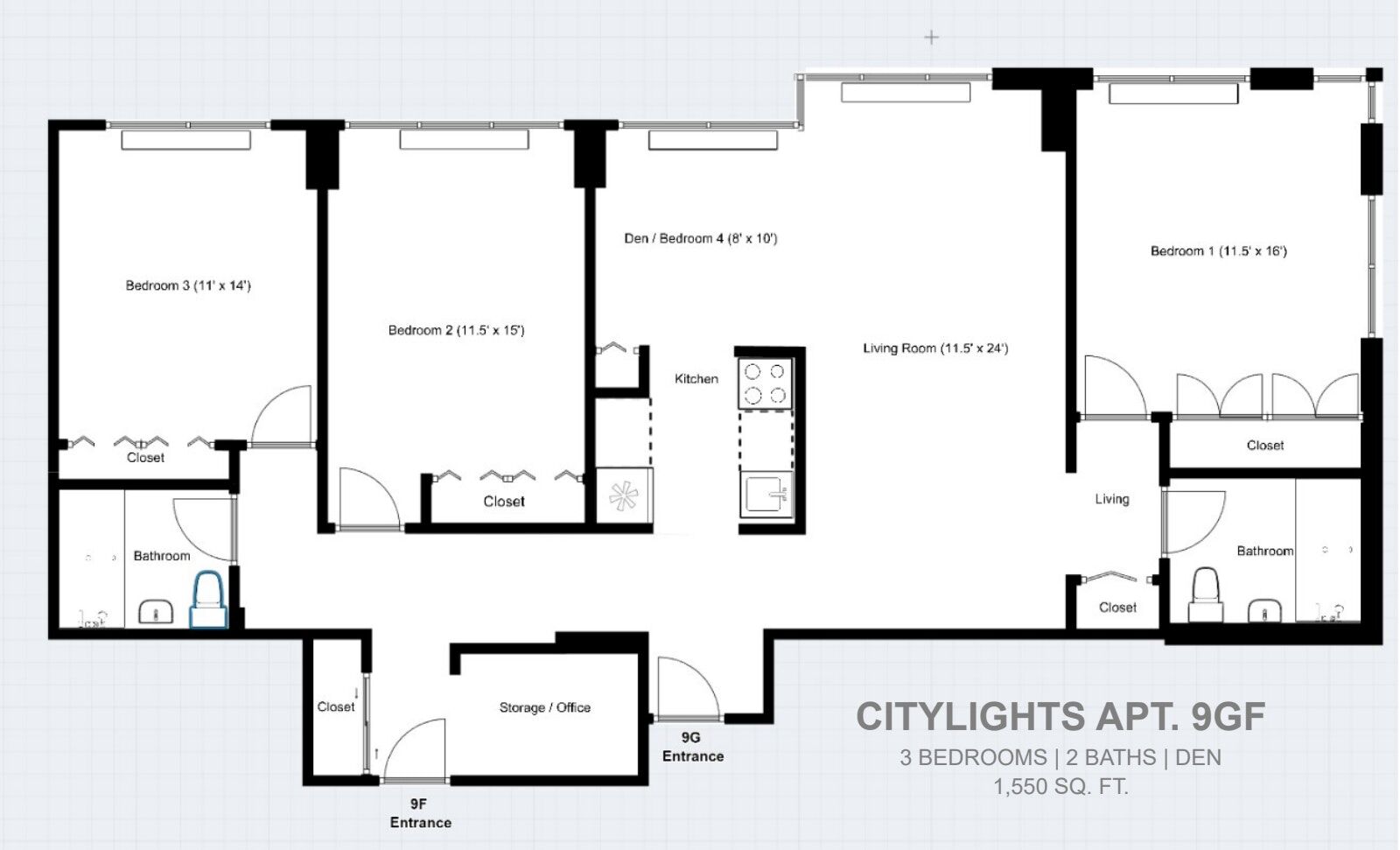 If space and prime LIC location are what you're looking for, look no further. This 3BR plus home office/2BA unit in Citylights was created by combining two units together to make a one-of-a-kind open, bright, and extremely spacious home. At 1,550 sq.ft., every single room is generous in size. All three bedrooms are enormous and could easily feet king-sized beds with room to spare. The triple window exposures offer East, West, and Northern views, including both a Manhattan and LIC skyline. The bonus home office room is perfect for working from home or a guest room or even just excessive amounts of storage.
