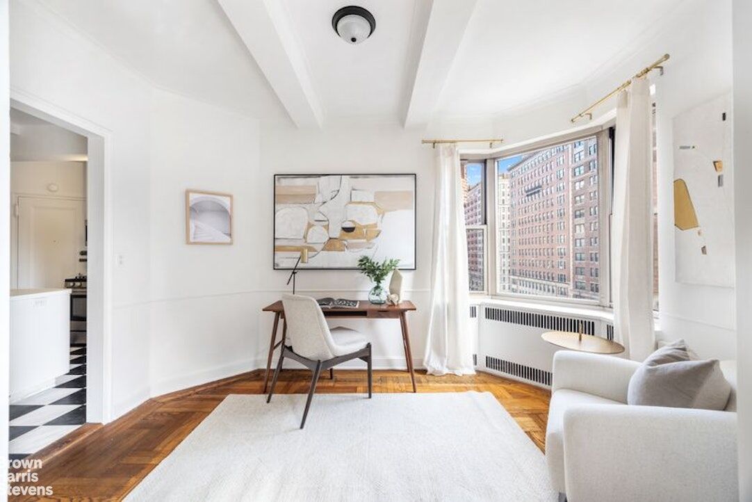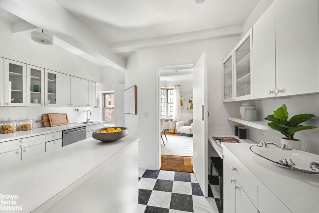 Just off the living room is a beautifully placed breakfast room/office with two exposures, bringing in exceptional light. It connects naturally to the oversized, windowed kitchen, which features an excellent layout and ample workspace.