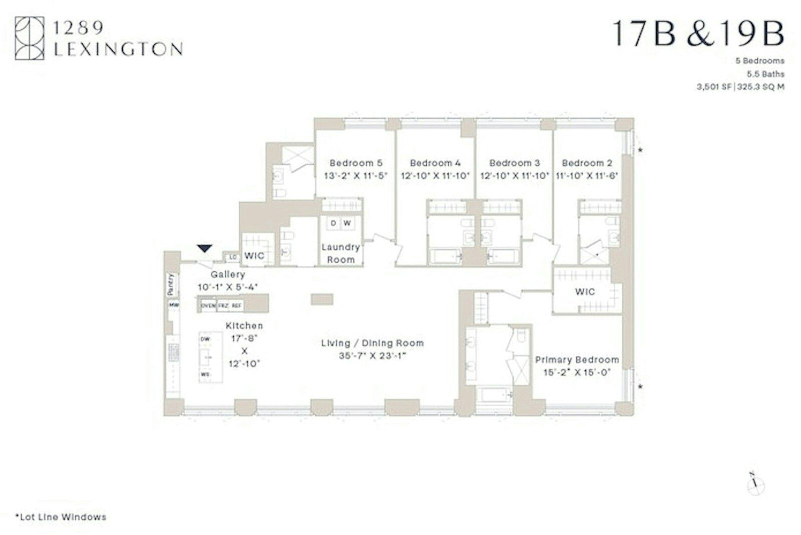 Spanning over 3,500 square feet, Apartment 17B boasts a stunning great room, an open chef's kitchen, four generously sized secondary bedrooms with ensuite bathrooms, and a luxurious primary suite featuring a serene five-fixture bathroom.