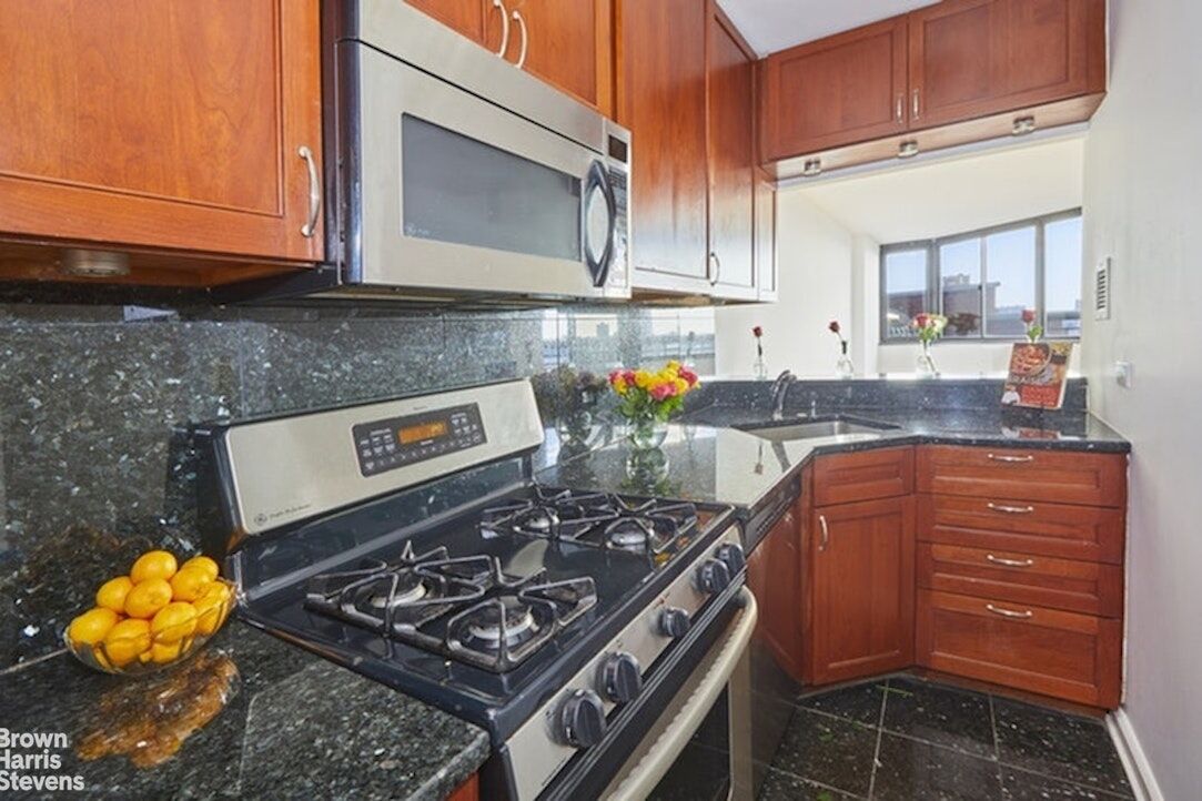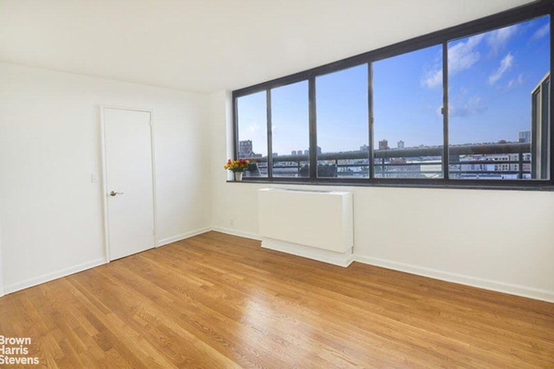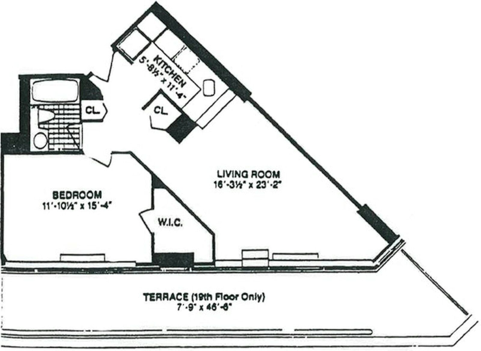 Call to view this very special high floor one bedroom rental at The Bromley. Apartment 19L is facing West with a huge 46' x 8' private terrace running the whole length of the apartment. This charming home has been updated with a pretty white tile bath, hardwood floors, smooth walls and ceilings and an updated kitchen with pass-through. You can watch the sunset from anywhere in the apartment.