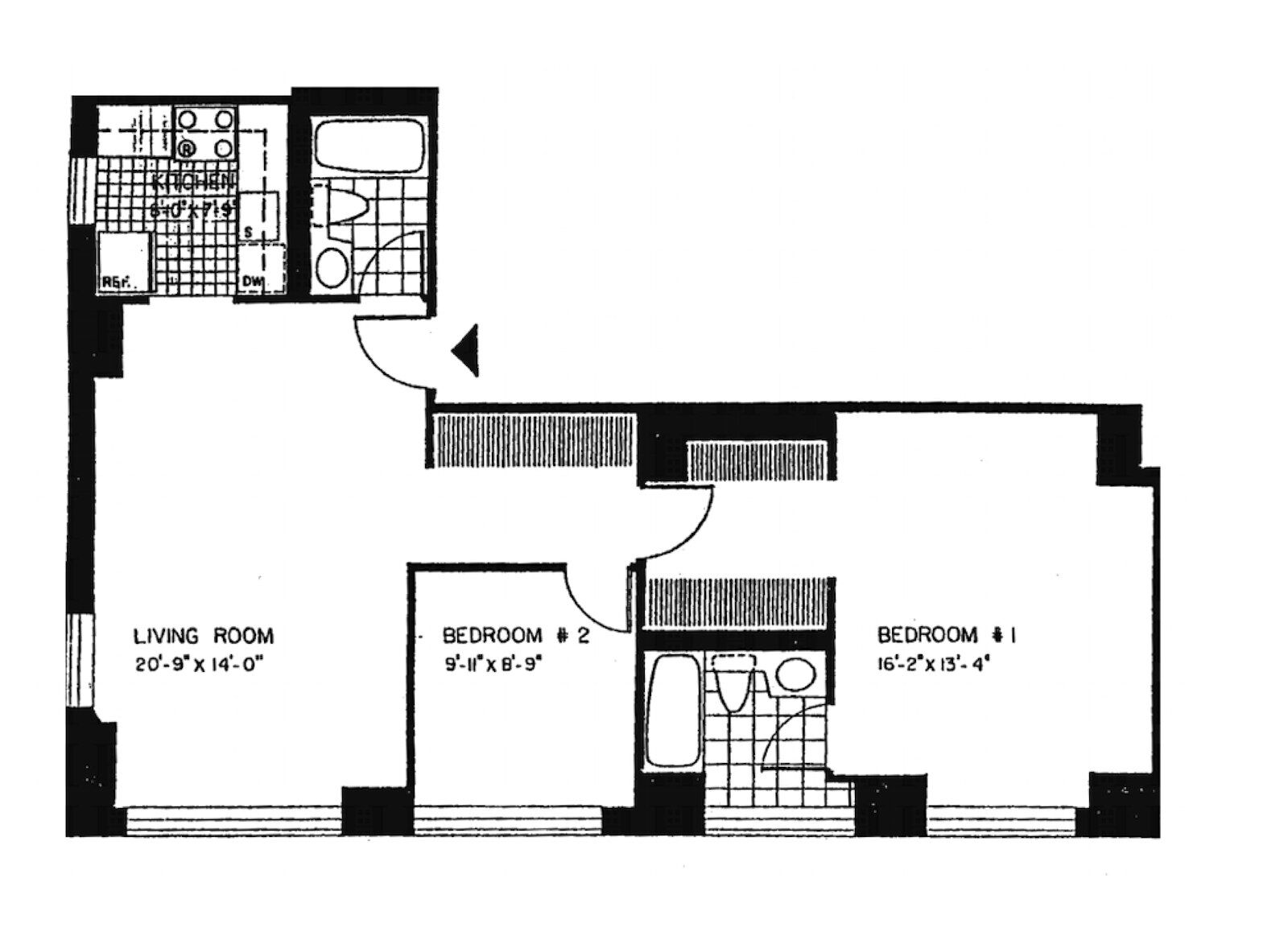 This pristinely renovated, spacious two-bedroom residence offers sweeping northeast views of the Manhattan skyline through oversized windows. The expansive living area easily accommodates a full dining table, creating an ideal setting for both everyday living and entertaining.
