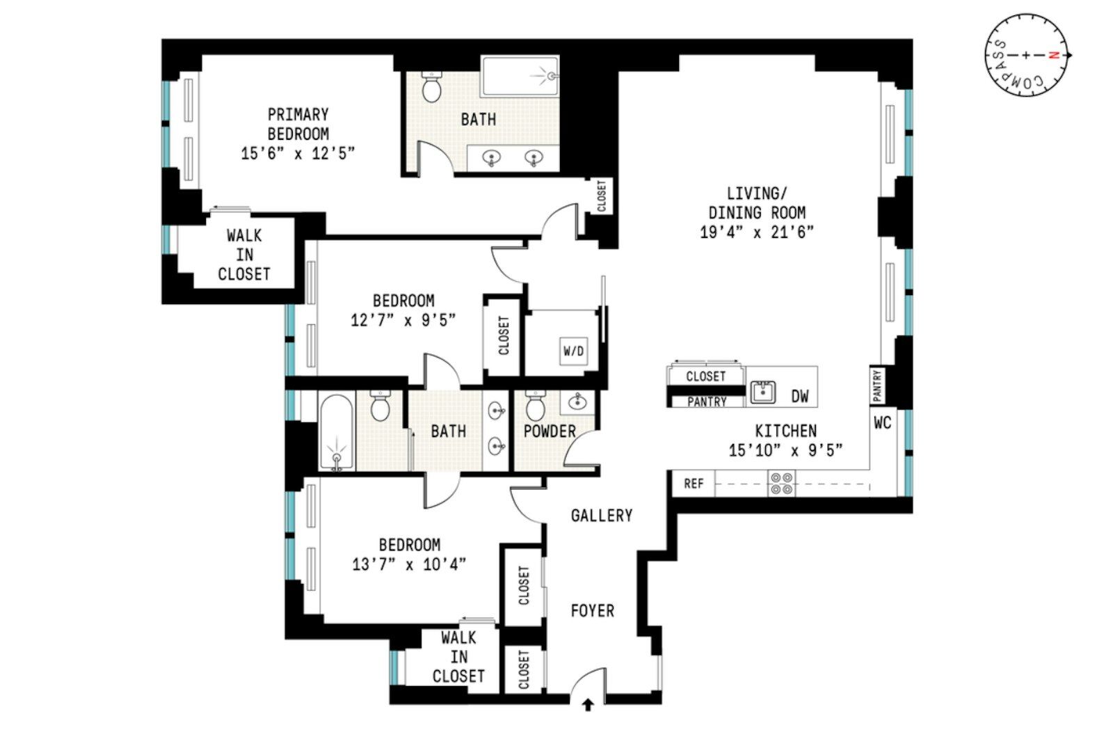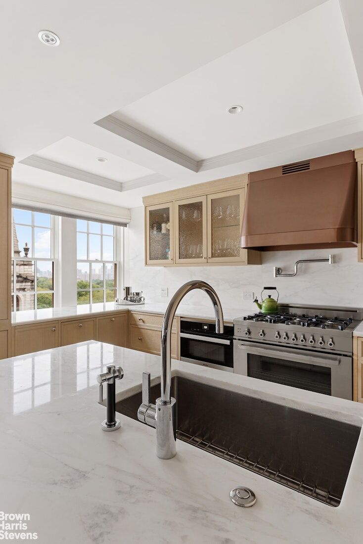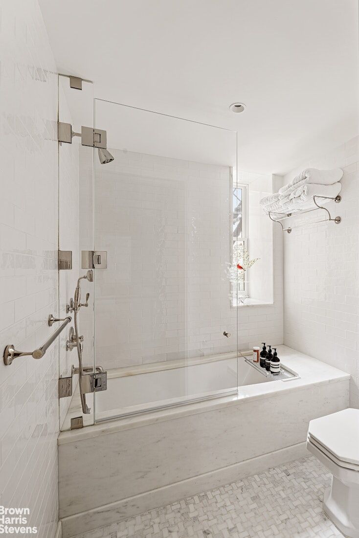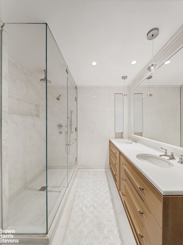 Residence 12E offers the best of pre-war condo living on Central Park West: A large great room with stunning direct views of Central Park; three comfortable bedrooms with southern light; two-and-a-half elegant baths, a washer-dryer in a private laundry room within the apartment; and everything renovated and decorated to perfection. The bathrooms were gut renovated and feature custom marble and Waterworks fixtures, with sumptuous slab marble panels throughout the primary bath. The new windowed kitchen with Central Park views is a cook's dream and opens to the living space