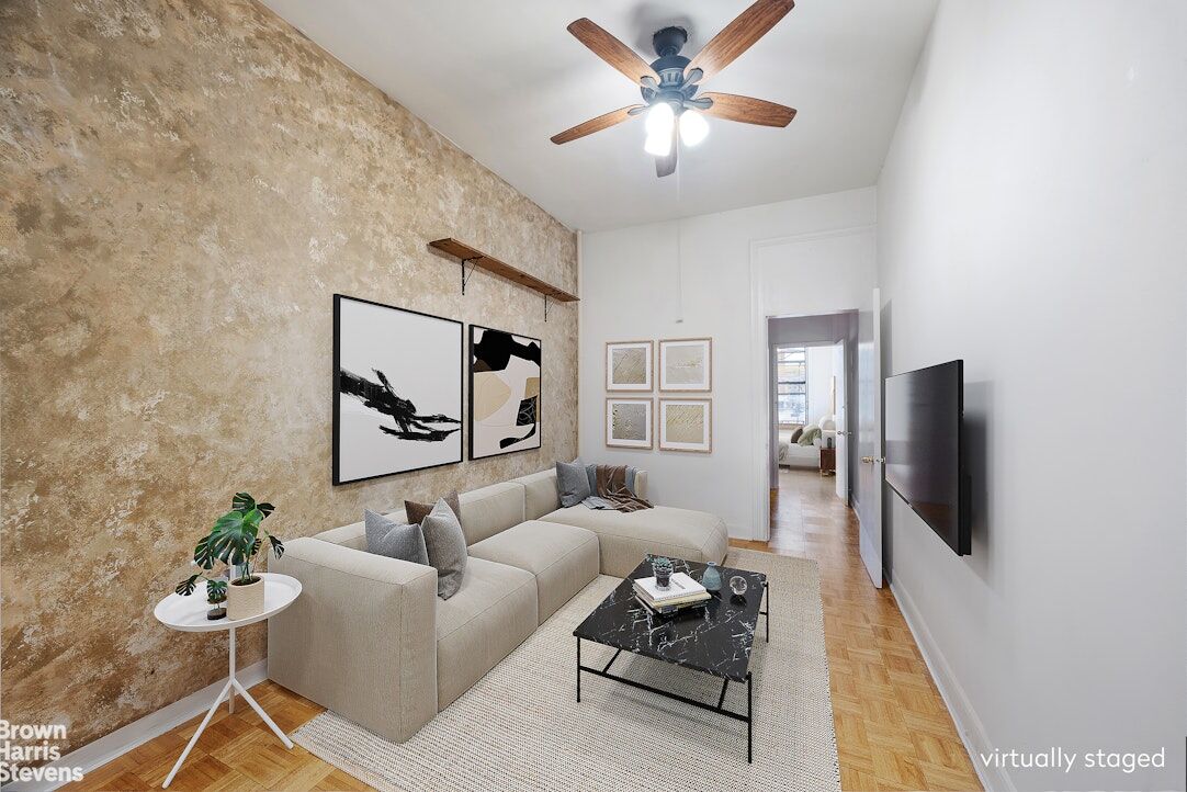 Welcome to 16 Morgan Avenue, 1R a floor-through apartment with classic Brooklyn character and a practical layout. The home features a spacious living room with hardwood floors and high ceilings, along with a separate windowed kitchen with full-size appliances and space for dining.