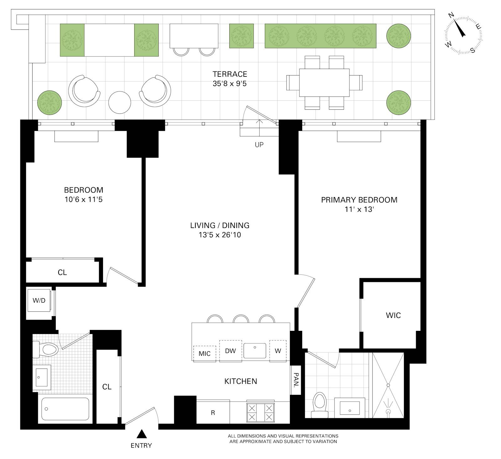 Welcome to #8E at The Edge - South Tower. This modern condominium features 2 bedrooms and 2 bathrooms perched on the 8th floor of a 30-story building. Designed by the Stephen B. Jacobs Group and developed by Douglaston Development, this residence was completed in 2010 and offers a thoughtful blend of comfort and luxury.