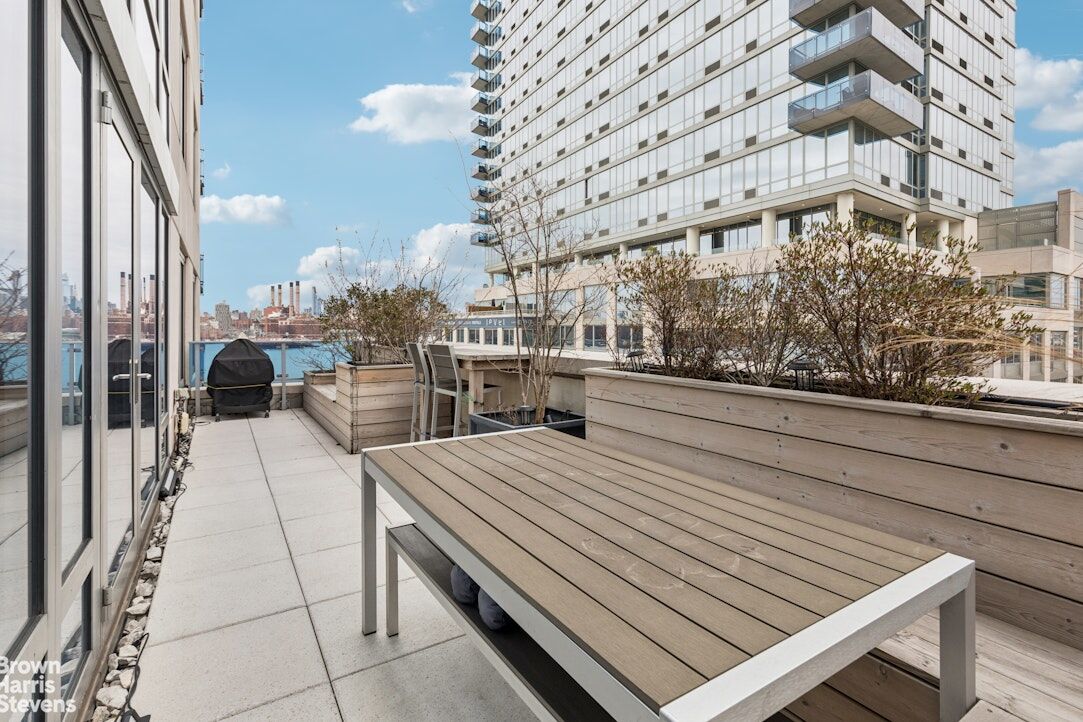 Upon entering, you are greeted by an expansive living area illuminated by floor-to-ceiling windows that provide ample natural light and stunning views. The highlight is the outdoor oasis: an expansive terrace equipped with custom-built seating and planters - a perfect spot for relaxation or entertaining.