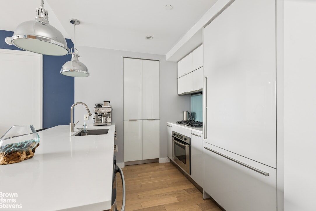 The open kitchen is outfitted with top-of-the-line Bosch and Miele appliances and features elegant quartz countertops, making it an ideal space for any culinary enthusiast. The master bedroom is spacious and bright, complete with an oversized walk-in closet for additional storage. The en-suite master bathroom boasts a spa-like ambiance with a glass-enclosed shower enhanced by rain shower fixtures, offering a soothing experience.