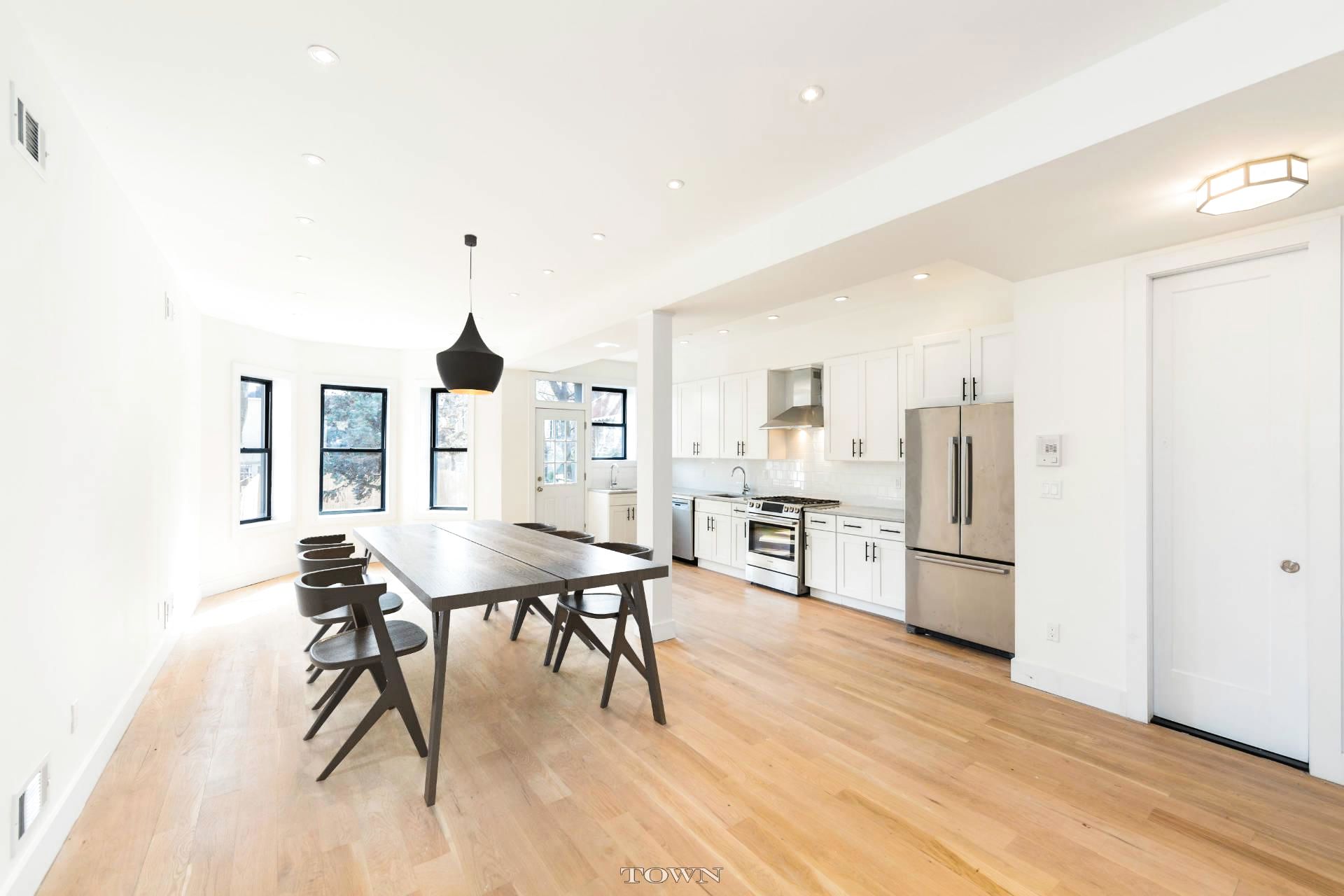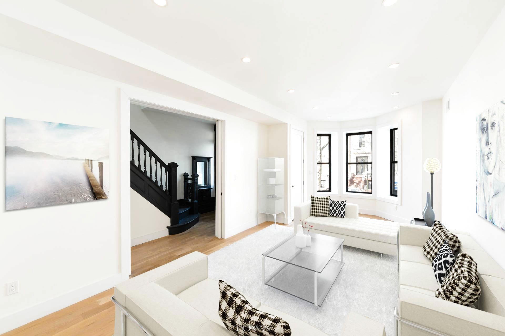 An incredible, two unit home containing an upper duplex and garden rental, each with flawless finishes and access to relaxing private outdoor spaces, this gracious property is set on a tree-lined street in Crown Heights. The owner's upper duplex opens into the sweeping parlor floor, where the ample living/dining area is anchored by a striking, re-interpreted grand staircase. A wall of windows and glass doors leading to the backyard send light streaming into the gorgeous chef's kitchen, which is outfitted with a French-door refrigerator, ceaserstone countertops and ample cabinets. Upstairs, there are three nicely sized bedrooms with treetop views and custom closets. The bathrooms in this home are modern masterpieces in gray and white, featuring floor-to-ceiling tile, high-tech showerheads and oversized sinks in sleek vanity cabinets. Downstairs, the garden-level, two-bedroom unit features a large living room and can easily fetch above market-rate rent for the neighborhood. The home features recessed lighting and central air conditioning, plus all-new plumbing and electrical throughout. The thoughtful gut renovation also included a complete restoration of the stunning brownstone facade and front railings. Live in Crown Heights, where the best of Brooklyn is all within walking distance. Brower Park, with its expansive green space and playgrounds, is just around the corner, along with the venerable Brooklyn Children's Museum, and the Jewish Children's Museum is just a few blocks away. Popular eateries like Basil Pizza & Wine Bar and Boeuf & Bun line nearby Kingston Avenue, while you're two blocks from the rapidly developing restaurant/cafe scene on Nostrand. Stroll down majestic Eastern Parkway to Prospect Park or hop right on the 3 train, ushering you into the city in 20 minutes.