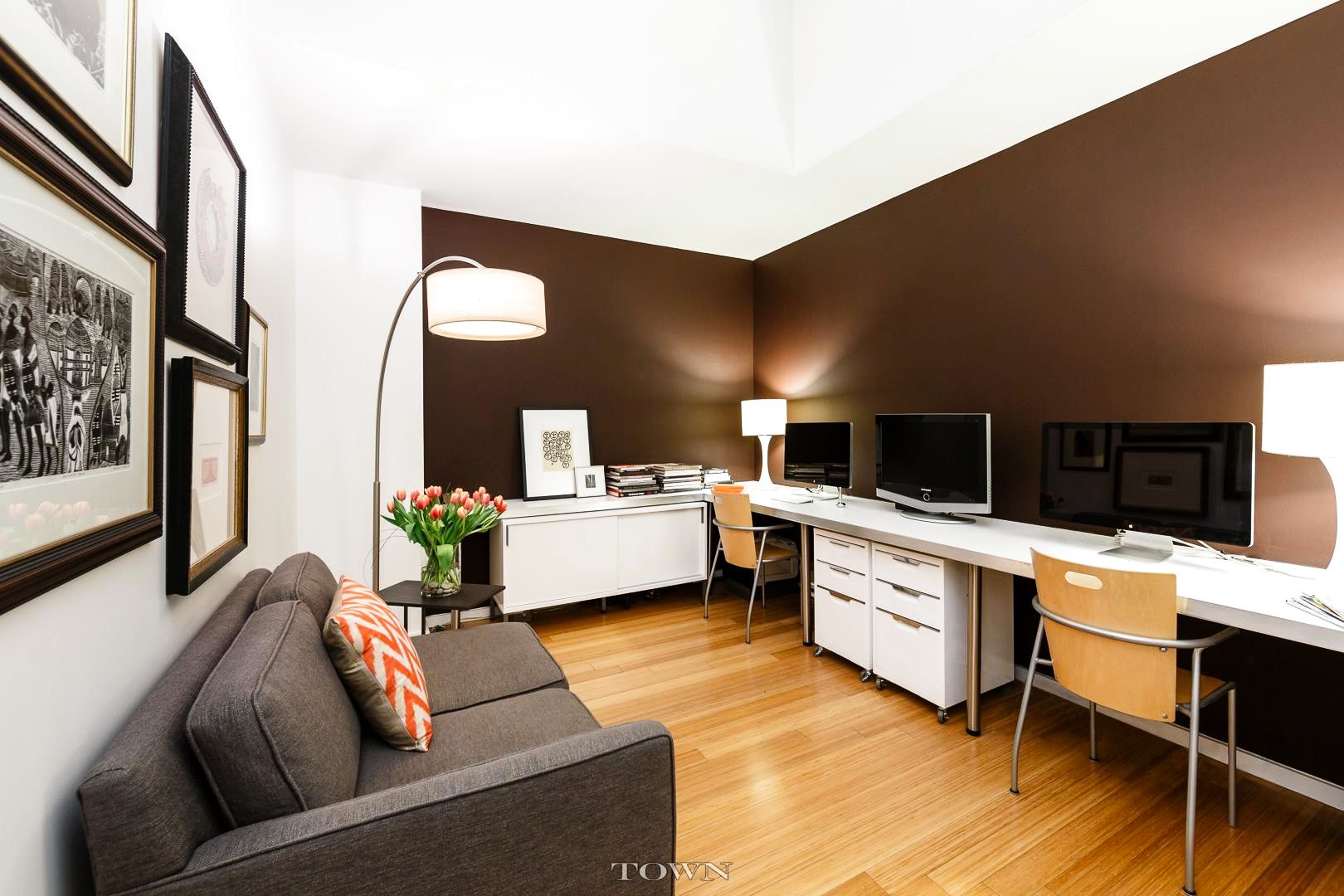 Upon entering the home, you have a 44-foot long gallery space perfect for hanging art. Beyond that is the home office with built-in workspaces. This can easily be converted into a second sleeping room. The bathroom has a double vanity, full length mirror, tub and custom-made, dark wood built in's throughout. The main sleeping room was enhanced with two large walk-in California Closets. A true chef's kitchen, with white lacquer cabinetry, Caesar Stone counters & backsplash and stainless steel appliances. The oversized island doubles as a dining table. The television and media components are all hidden behind extended shelving along the south wall, while a wall of under window shelving and storage was built so everything can be tucked away. The washer/dryer is hidden in the entry closet.