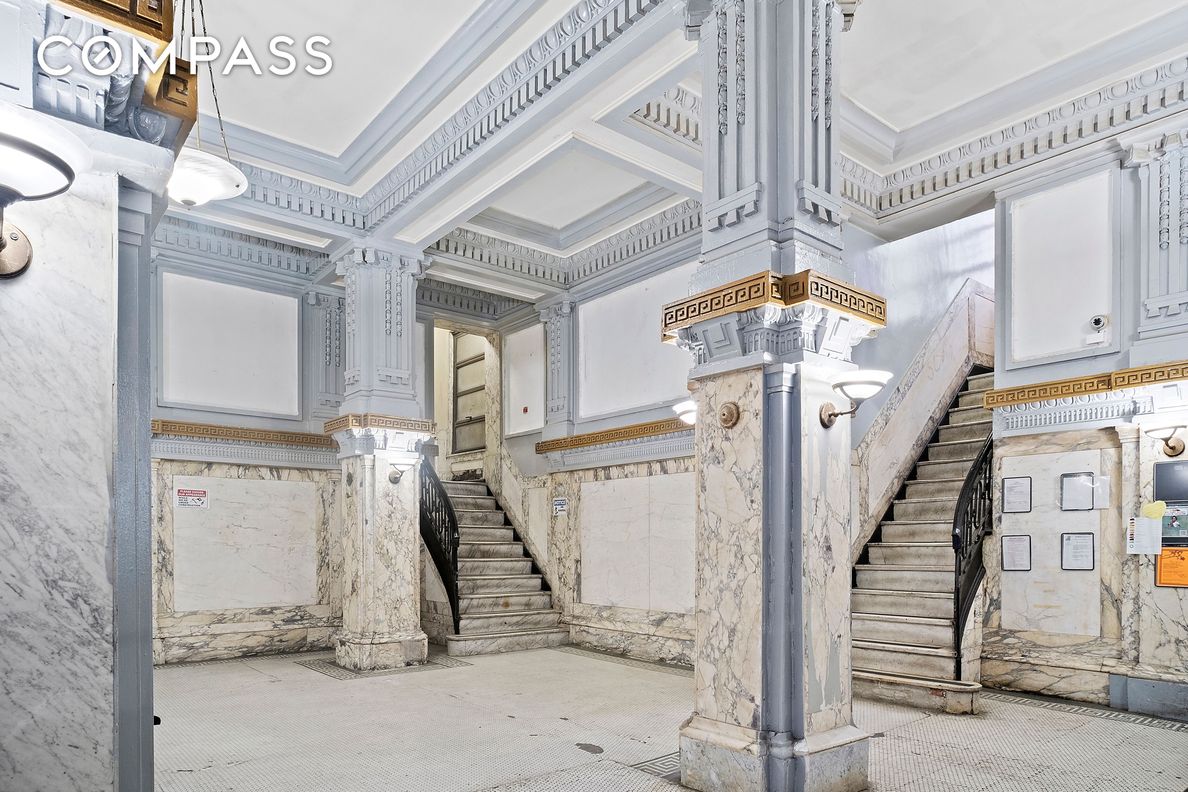 The St. Agnes Apartments at 41 Convent Avenue is a beautiful six-story prewar co-op building located in Harlem's historic area of Manhattanville in New York City. Designed by the renowned architect Henri Fouchaux and completed in 1910, the building's facade features classic architectural details in brick, limestone, terra cotta and intricate ironwork while its interior grand entrance hall boasts an eighteen feet barrel-vaulted ceiling.