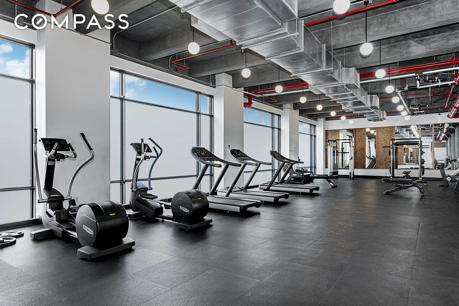 Building Amenities at 160 Imlay Residents enjoy full-service condominium amenities including: - 24-hour doorman and concierge - On-site superintendent - Fully equipped fitness center - Private showers and saunas - Panoramic roof deck with waterfront and sunset views - Storage and bike storage - Parking The building is a landmark conversion and one of Red Hook’s most architecturally significant residential addresses.