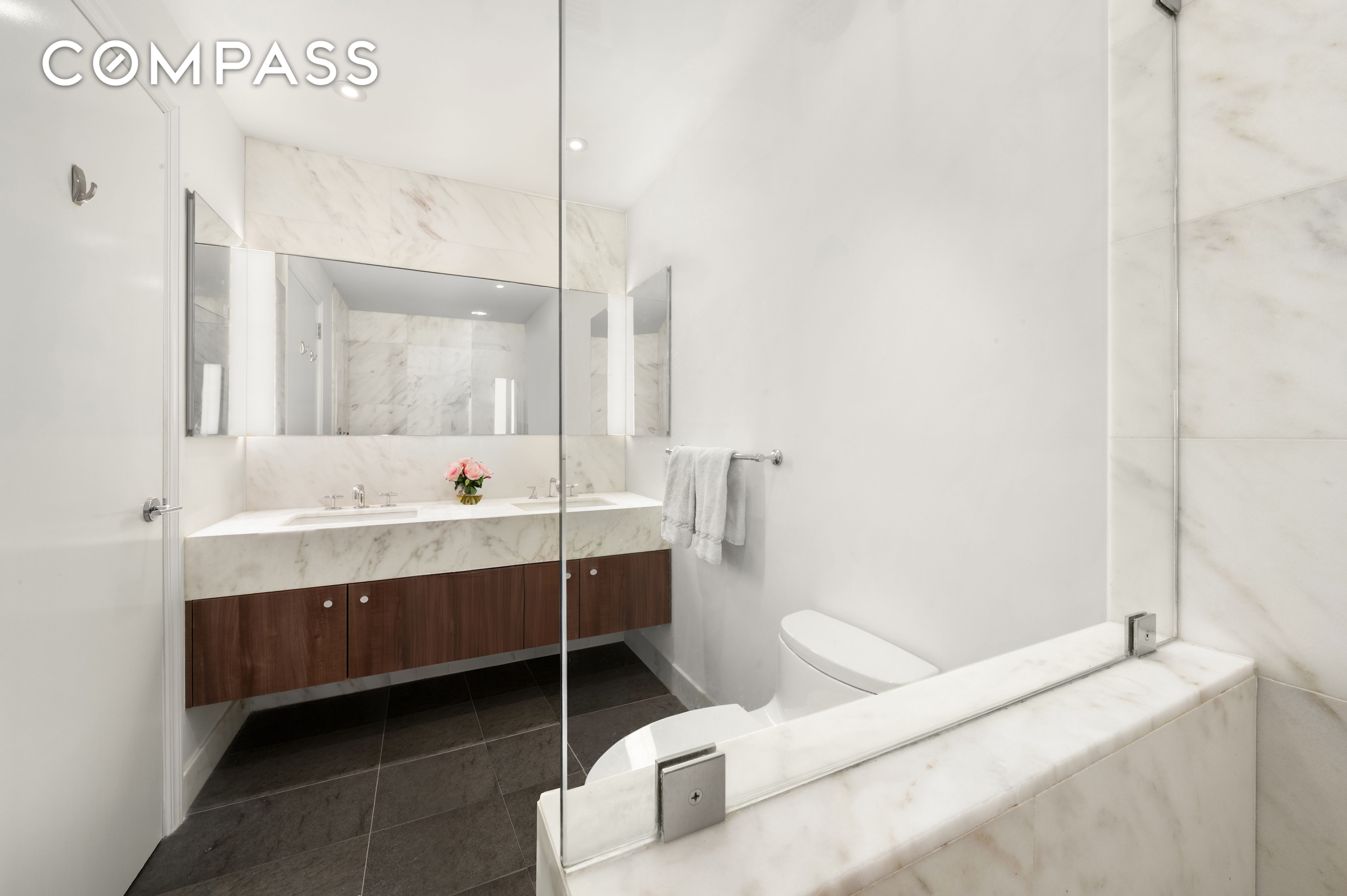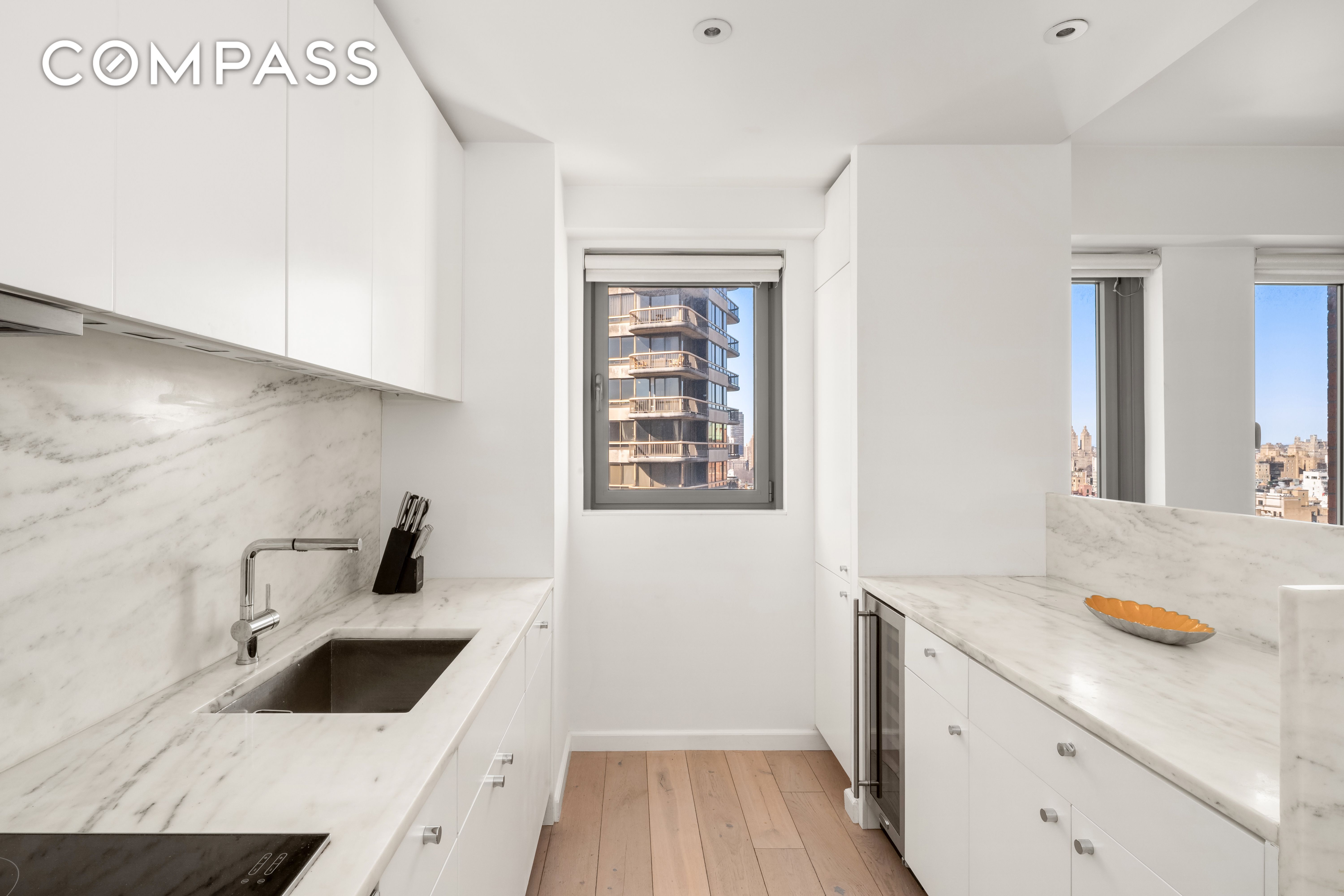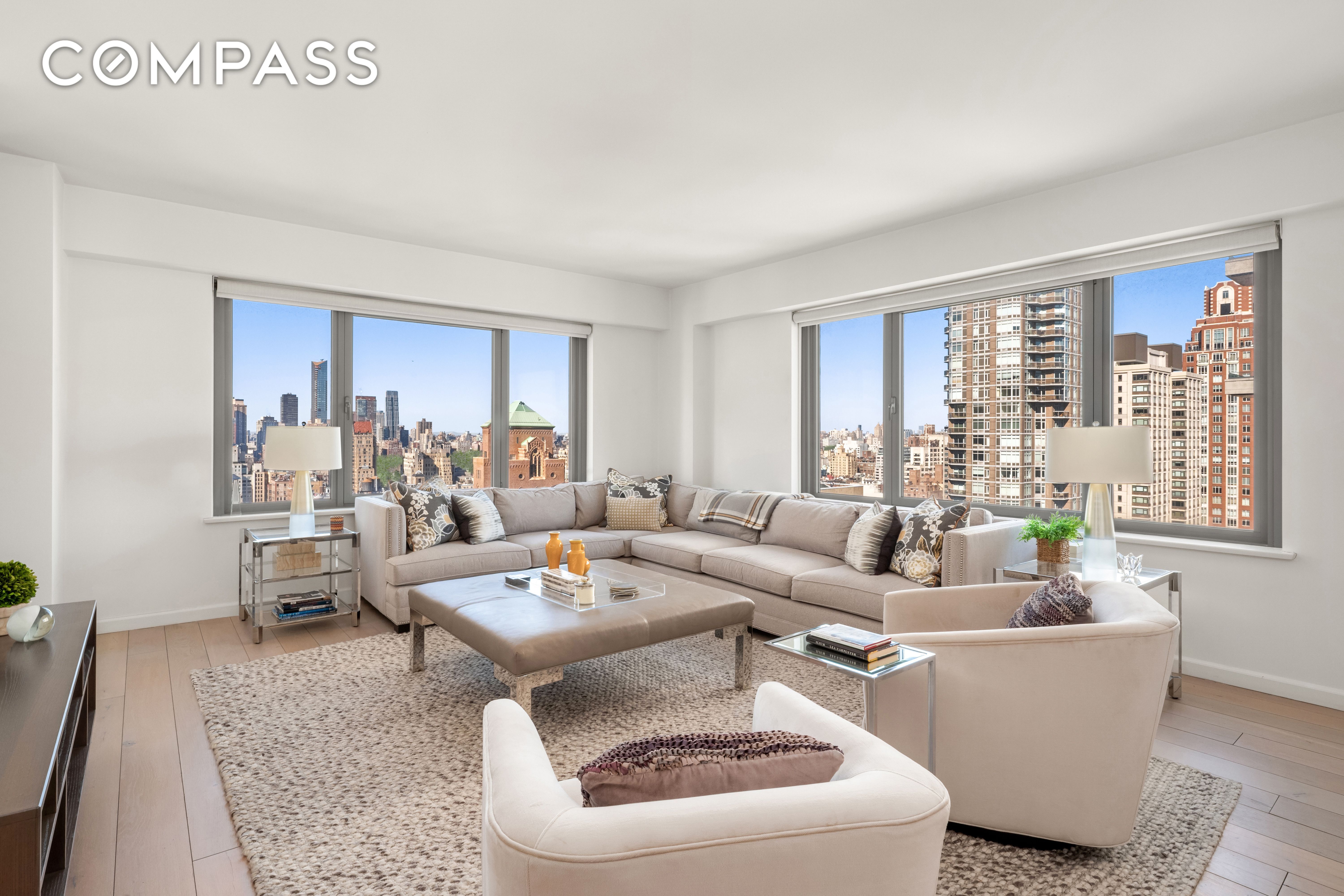 This high floor split two-bedroom, two-and-a-half-bathroom corner condominium residence is located in the iconic mid century red brick highrise at 200 East 62nd Street. The interior, reimagined by the award-winning architectural and design team Messana O'Rorke, offers a bright, airy and glamorous layout, complemented by an incredible 16 windows and copious closet space throughout. Perched high above Third Avenue on the 27th floor, this gracious home presents sweeping city views (including Central Park) that extend to the horizon through exposures to the north and west. A large, welcoming foyer opens to a sun-soaked corner great room that showcases stunning panoramic views of Central Park and NYC's most iconic pre-war classic buildings including the Barbizon, San Remo, and Eldorado. All windows are outfitted with electric Somfy solar shades. A partition open on two sides clearly establishes separate dining and living sections while maintaining the home's free-flowing character. Adjacent to the dining area is an open chef's kitchen appointed with white marble countertops and tall backsplash, custom matte lacquer cabinetry, a full Miele appliance suite and a Marvel wine refrigerator. A generous split layout was implemented for the living quarters to maximize privacy. Both spacious bedrooms feature upgraded custom California closets, electric blackout shades by Somfy and sumptuous en-suite bathrooms. The massive primary bedroom faces north with specular city skyline views. Its marbled ensuite bathroom boasts a double vanity, radiant heated floors, a glass enclosed shower, WaterWorks fixtures and Robern medicine cabinets. The large secondary bedroom has views to the west, including glimpses of Central Park. It’s ensuite bathroom is clad in white ceramic tile and Basaltina stone. Additionally, both bedrooms are outfitted with multiple walk-in and linear closets providing abundant storage. Other highlights of this extraordinary home include a laundry room with Miele washer and dryer, a chic powder room, digital climate control (zoned & Wi-Fi-enabled), and seven inch wide plank European white oak flooring throughout. 200 East 62 is a 30-story luxury condominium set back on the corner of Third Avenue at the nexus of Midtown and the Upper East Side. Residents enter the building through a landscaped porte-cochere driveway and into a 24-hour attended lobby with Basaltina floors and a fireplace accented by rich black walnut. World-class amenities include a state of the art fitness center, rooftop club room and terrace with magnificent views in every direction, kids play room, on-site Parking, resident manager, and white glove concierge service. *Advertised taxes reflect a primary residence condominium abatement.