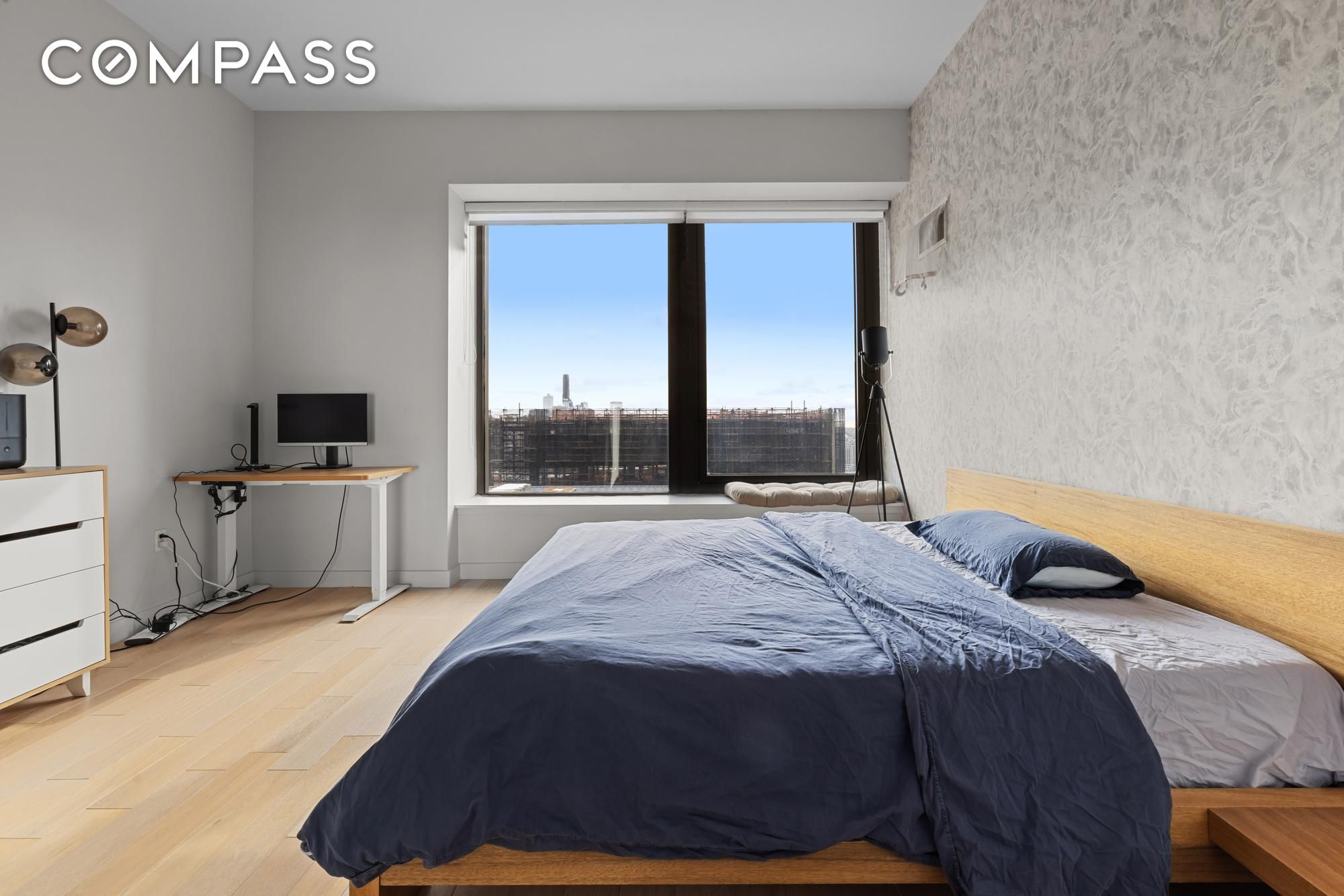 Bathed in natural light, Unit 31C features soaring 10-foot ceilings and oversized 6-foot tall windows with rare triple exposures to the South, West, and East. The open-concept layout is anchored by wide-planked oak flooring and an individual heat pump HVAC system for year-round comfort.