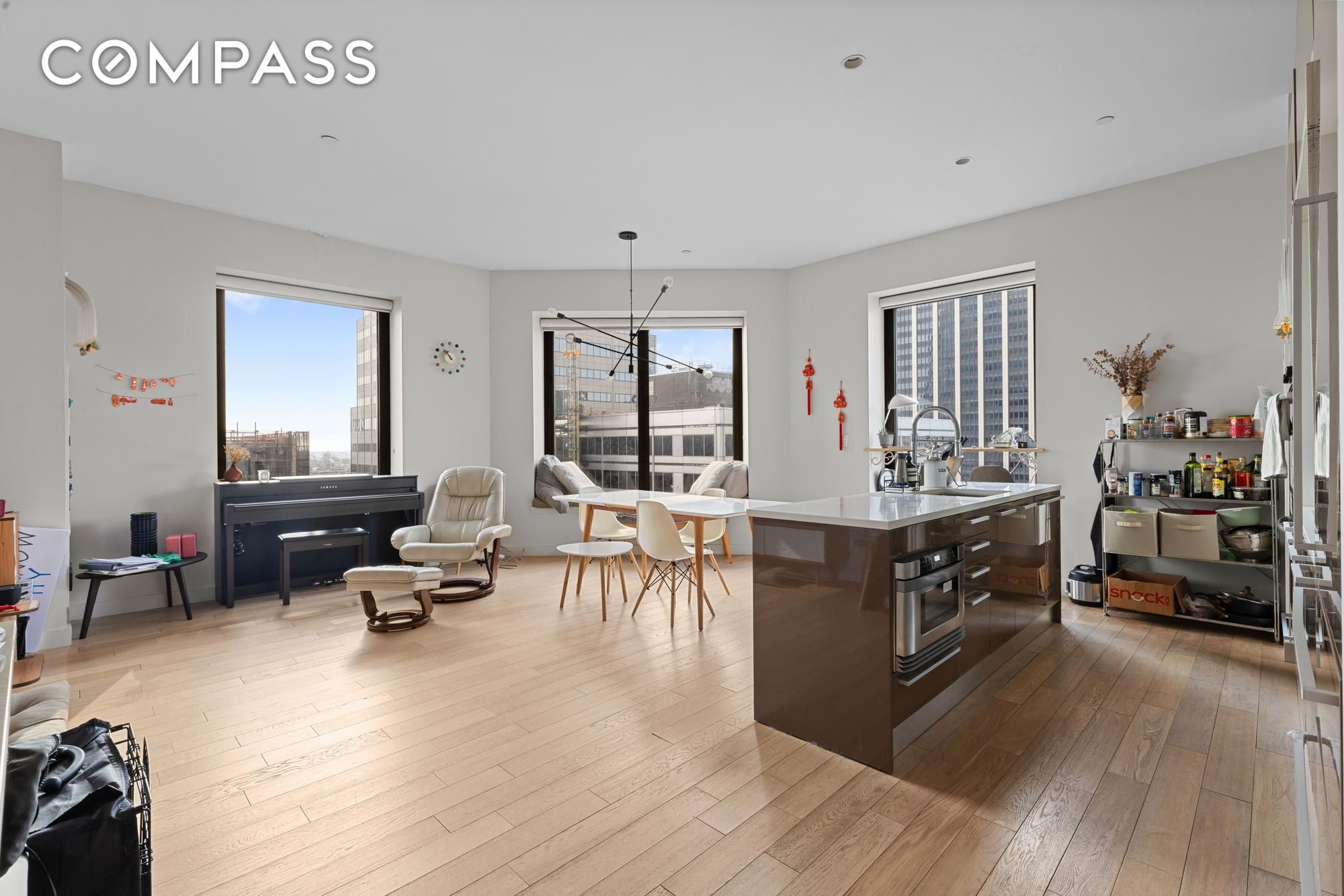 Experience luxury living from the 31st floor of one of the Financial District’s most prestigious condominiums. This sprawling 1,352 square foot corner residence, designed by the acclaimed Rockwell Group, offers a perfect blend of sophisticated design and breathtaking scale.