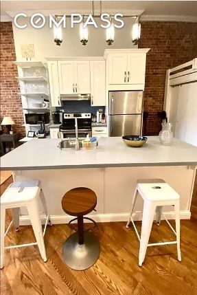 Apartment/Building Details: -Unique Studio + Sleeping Loft -Exposed Brick -High Beam Ceilings -Recessed Lighting -Hardwood Flooring -Large bay windows with tons of natural sunlight -Open Gourmet Kitchen with an Island -Stainless Steel Appliances -Dishwasher -Breakfast Bar -Tons of Counter Space and Cabinets -Great Closet Space/Storage -Central AC/Heat -Unique Brownstone with lots of Character -Managed Superintendent