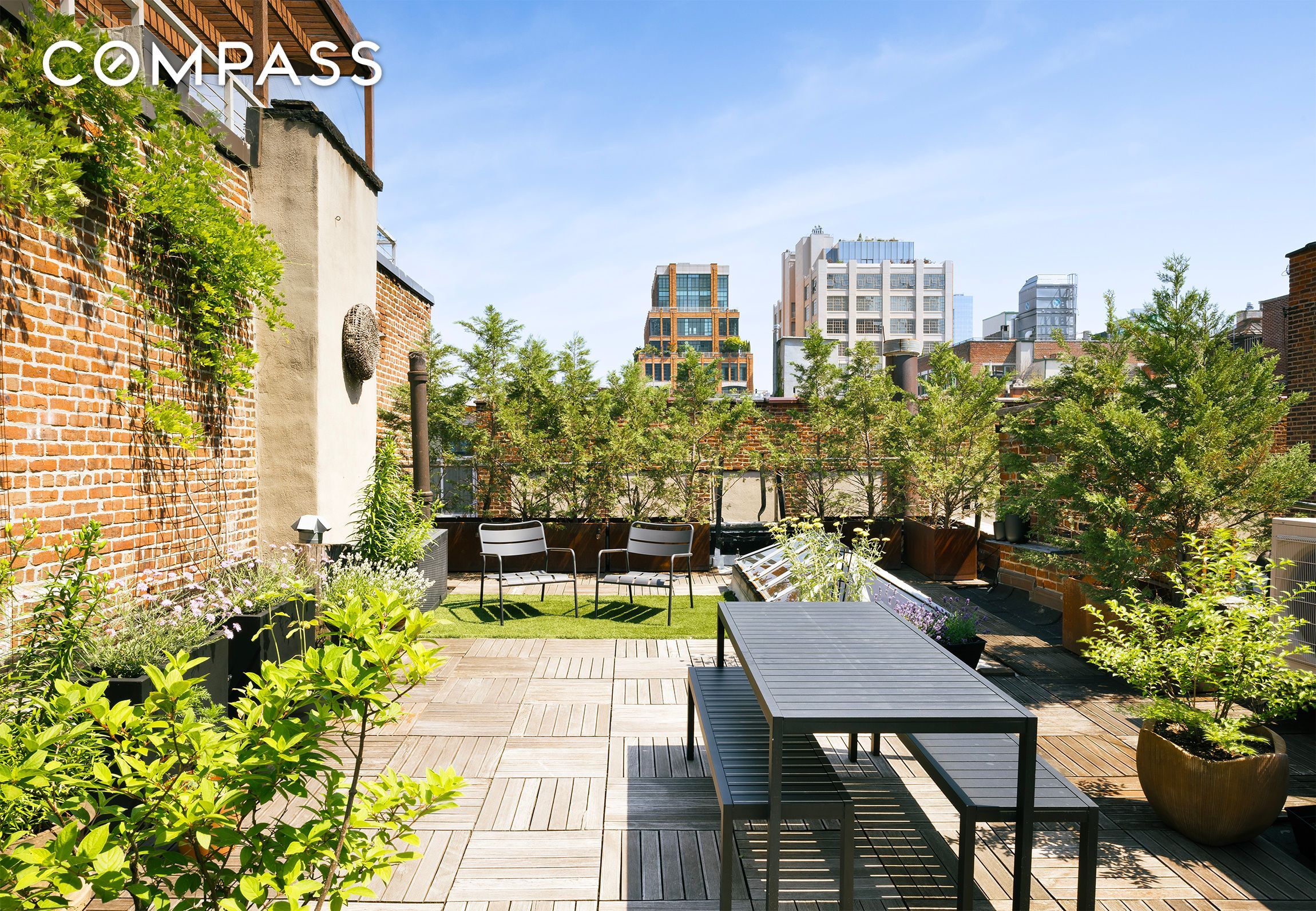 Best of all, Apartment 10 has private access to a stunning fully-landscaped roof deck with an outdoor shower, electricity, and incredible views of downtown Manhattan.