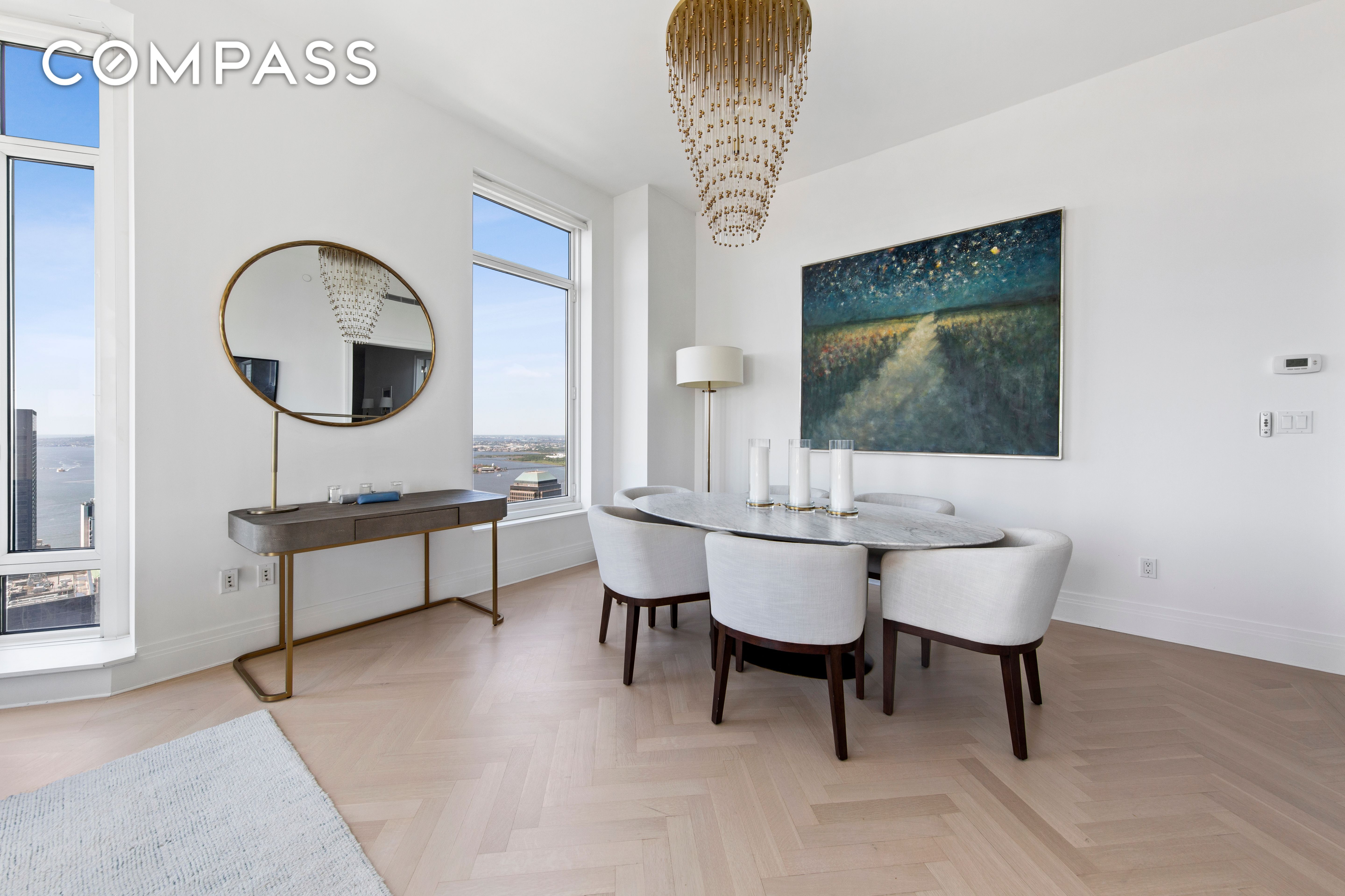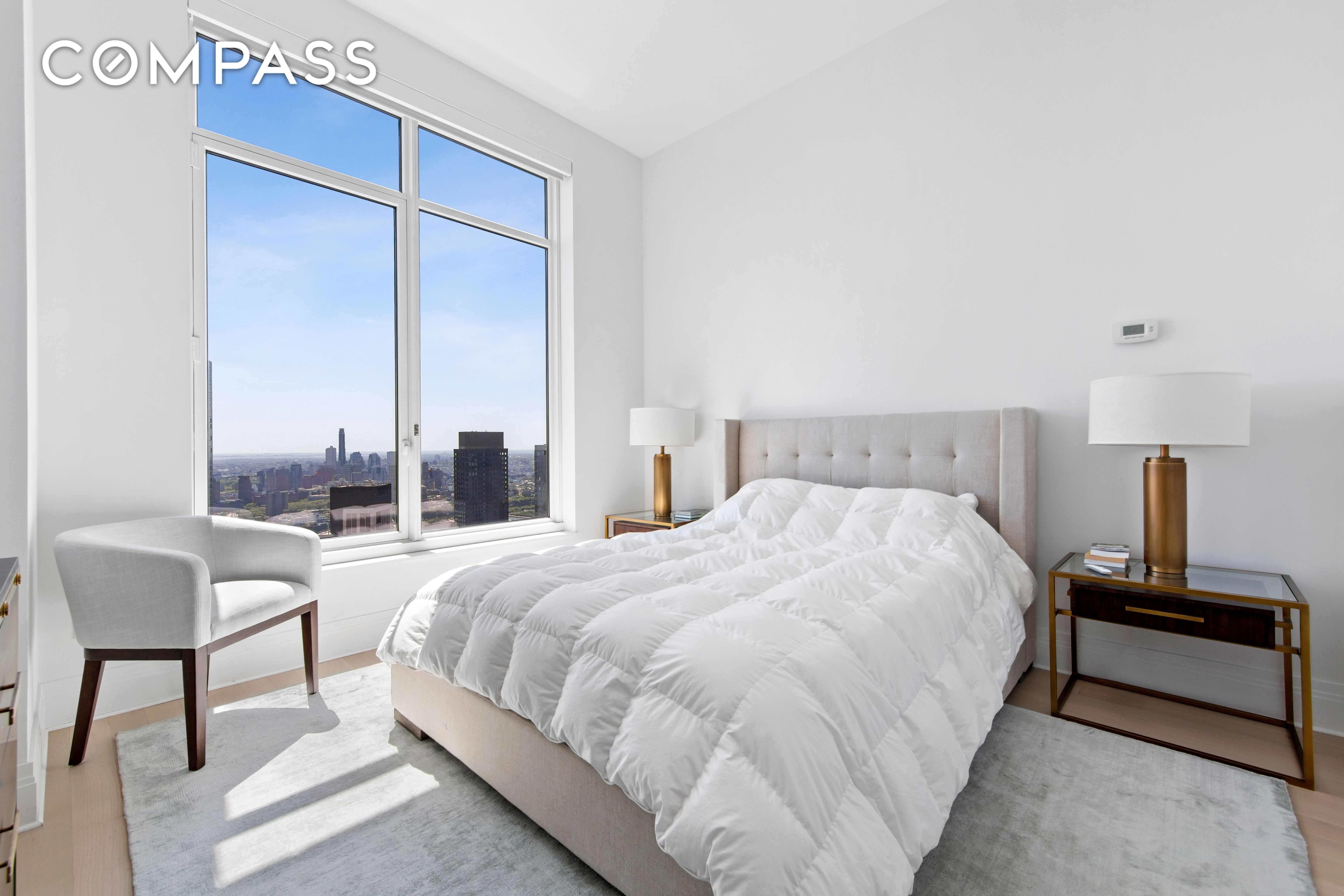 Perched on the 72nd floor, this beautifully appointed 3-bedroom, 3-bathroom corner residence showcases sweeping river and city views. The ideal layout offers a well-proportioned living/dining room with a bay window and separate bedroom wings. The Primary Bedroom Suite is situated on the west side of the apartment and boasts a walk-in closet and 5-fixture marble bathroom with dual vanities. The top-of-the-line kitchen features Bilotta rift-cut oak kitchen cabinetry and Gaggenau appliances. Additional highlights of this unparalleled offering include solid oak herringbone floors, 10' ceilings, a washer/dryer, and multi-zoned heating and cooling.