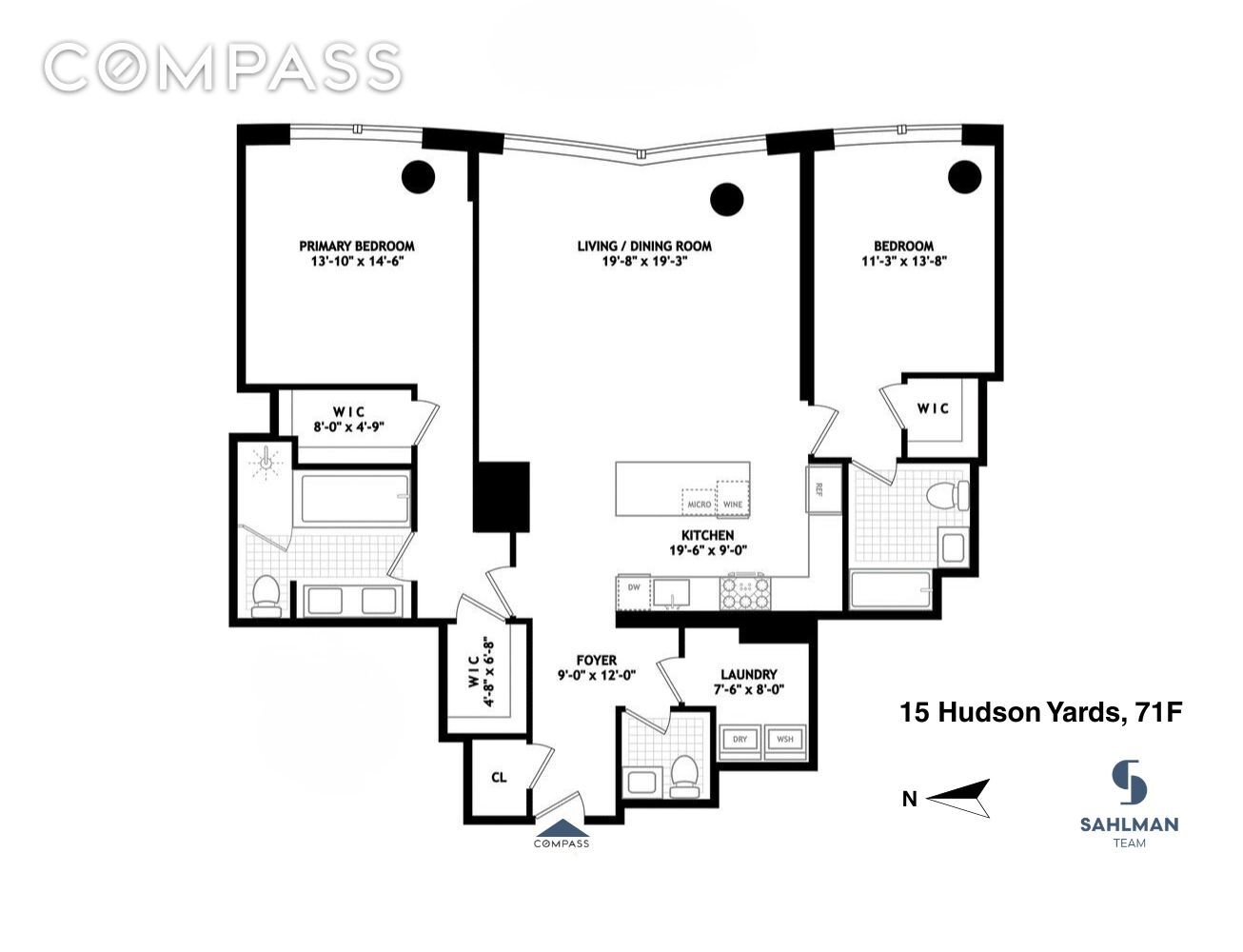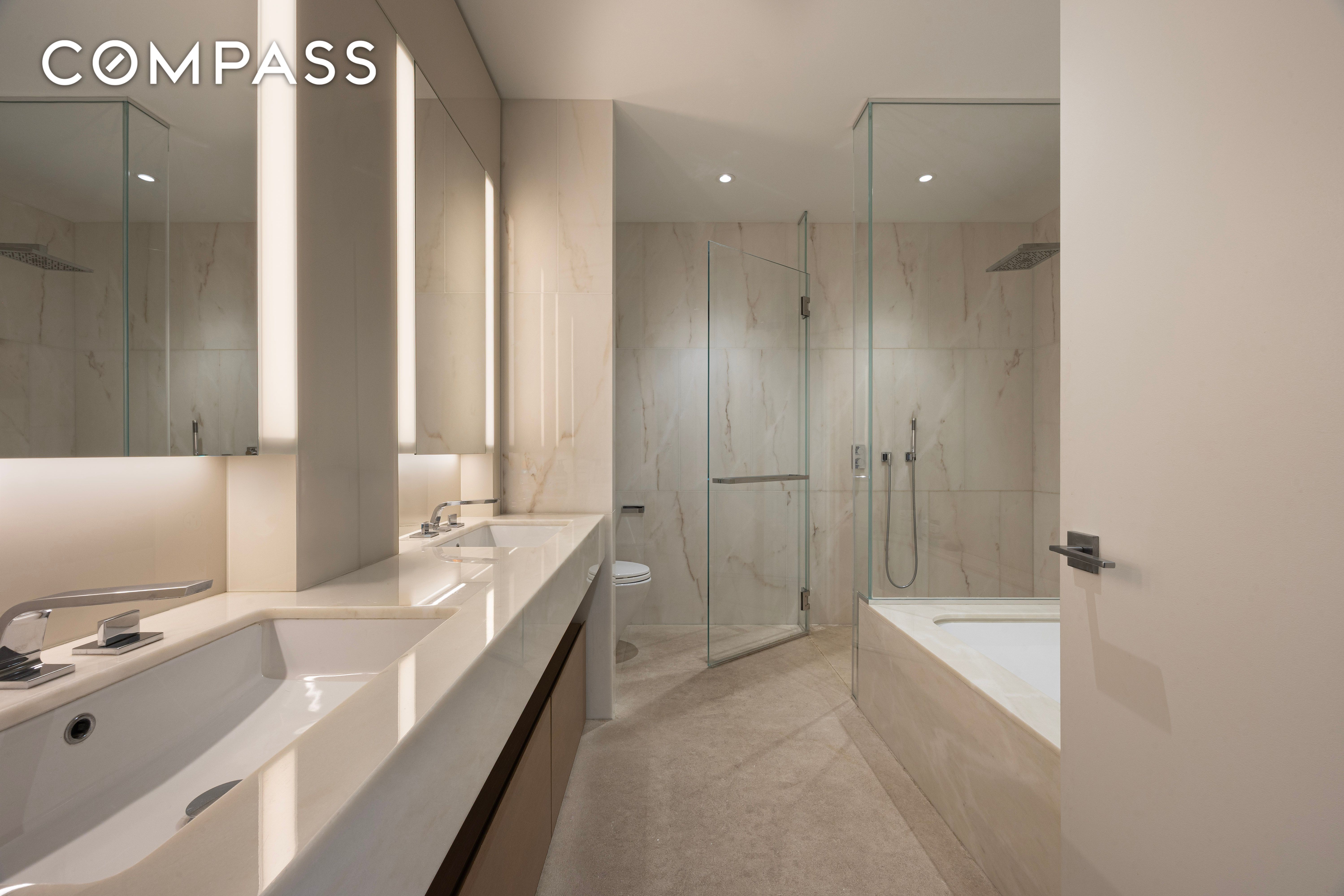 Extraordinary eastern exposures and breathtaking views at the iconic 15 Hudson Yards tower. High on the 71st floor, this 1,729-square-foot two-bedroom, two-and-a-half-bathroom offers 11-foot ceilings, dramatic floor-to-ceiling windows, incredible natural light, and panoramic views of downtown Manhattan. Through a gracious entry foyer with coat closet and marble-clad powder room, enter through an expansive great room perfect for entertaining as a living/dining room. The thoughtfully designed opened kitchen features sleek, modern finishes, the kitchen showcases Bulthaup oak cabinetry, striking Calacatta Michelangelo marble countertops and backsplash, and a full suite of premium Miele appliances, including a vented gas cooktop, drawer microwave, and dishwasher. A split-bedroom layout provides both privacy and comfort. The primary suite offers two custom walk-in closets and a luxurious ensuite bathroom finished in elegant Italian Grigio Trambiserra marble, as well as radiant heated floors, a double vanity, a glass-enclosed shower, and a deep soaking tub. The second bedroom is equally spacious and also includes its own beautifully finished ensuite bath. Designed by the renowned architectural firm Diller Scofidio + Renfro, 15 Hudson Yards represents a striking blend of innovative design and refined luxury. Residents enjoy access to over 40,000 square feet of exceptional amenities across three levels, including a 24-hour concierge and valet along with an array of lifestyle services such as housekeeping, dry cleaning, tailoring, shoe shining, personal shopping, grocery delivery, and pet care. The building’s spectacular health and wellness center on the 50th floor features sweeping city views and includes a 75-foot swimming pool, state-of-the-art fitness center, yoga and fitness studios, private spa suites with treatment rooms, and a beauty bar for hair and makeup services. Experience the pinnacle of New York City living with world-class amenities and unforgettable views at 15 Hudson Yards. Some photos are virtually staged.