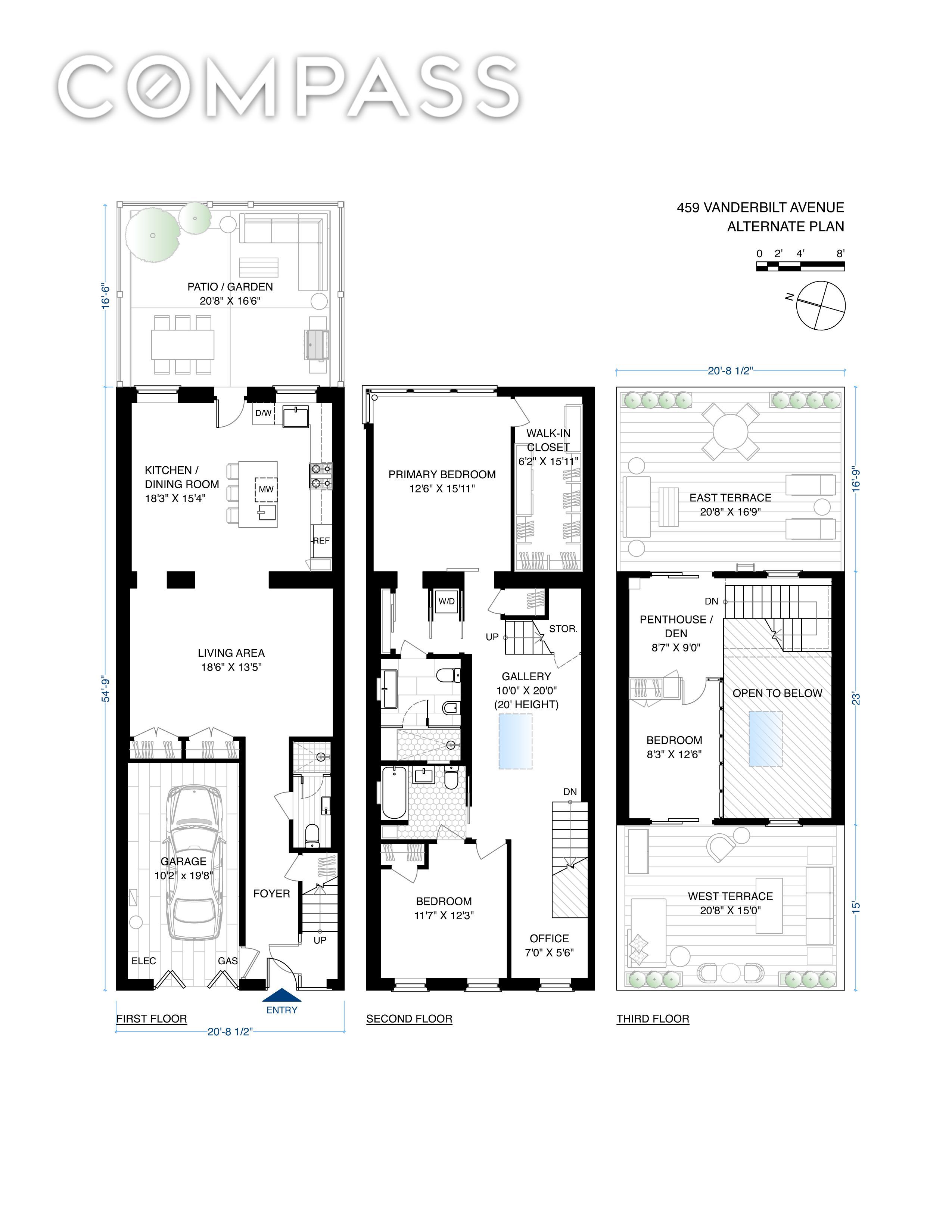 Ideally placed at the crossroads of Fort Greene and Clinton Hill, 459 Vanderbilt Avenue is a rare mint modern townhouse with indoor parking, ceilings that soar from ten to twenty feet high, and three stunning outdoor spaces. This gorgeous showplace was fully gut renovated in 2019 with state-of-the-art systems and high-end fixtures and finishes throughout, including an array of solar panels on the roof.