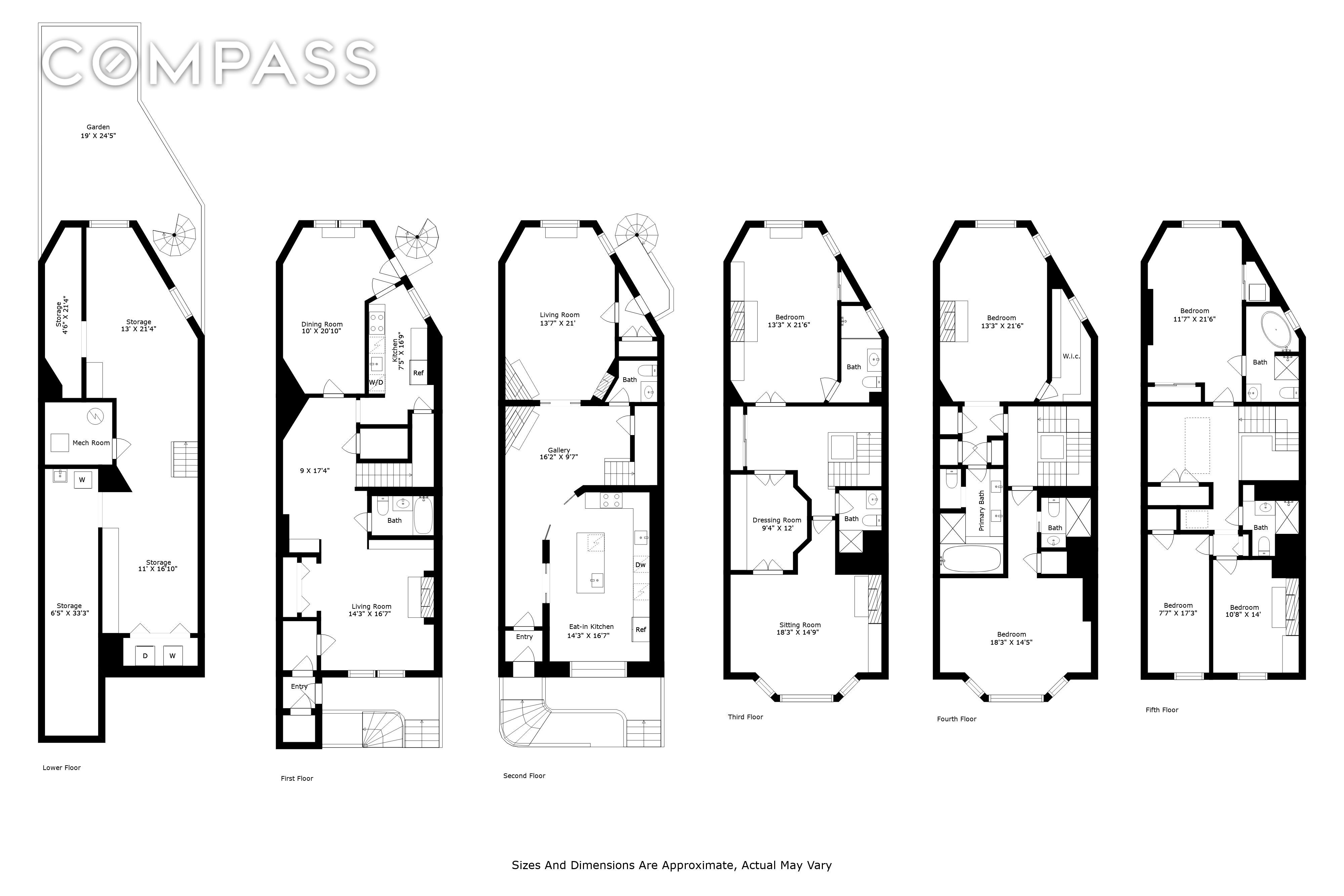 With its 20-foot-wide layout, 6,875 square feet of living space, and exquisite original details, 351 West End Avenue combines beauty with functionality. The building includes seven bedrooms, seven and a half baths, three working fireplaces, three laundry systems, hardwood floors, new central air conditioning, a new roof, and a charming private garden. Additionally, the lower unit can offset building costs, making this an attractive investment.