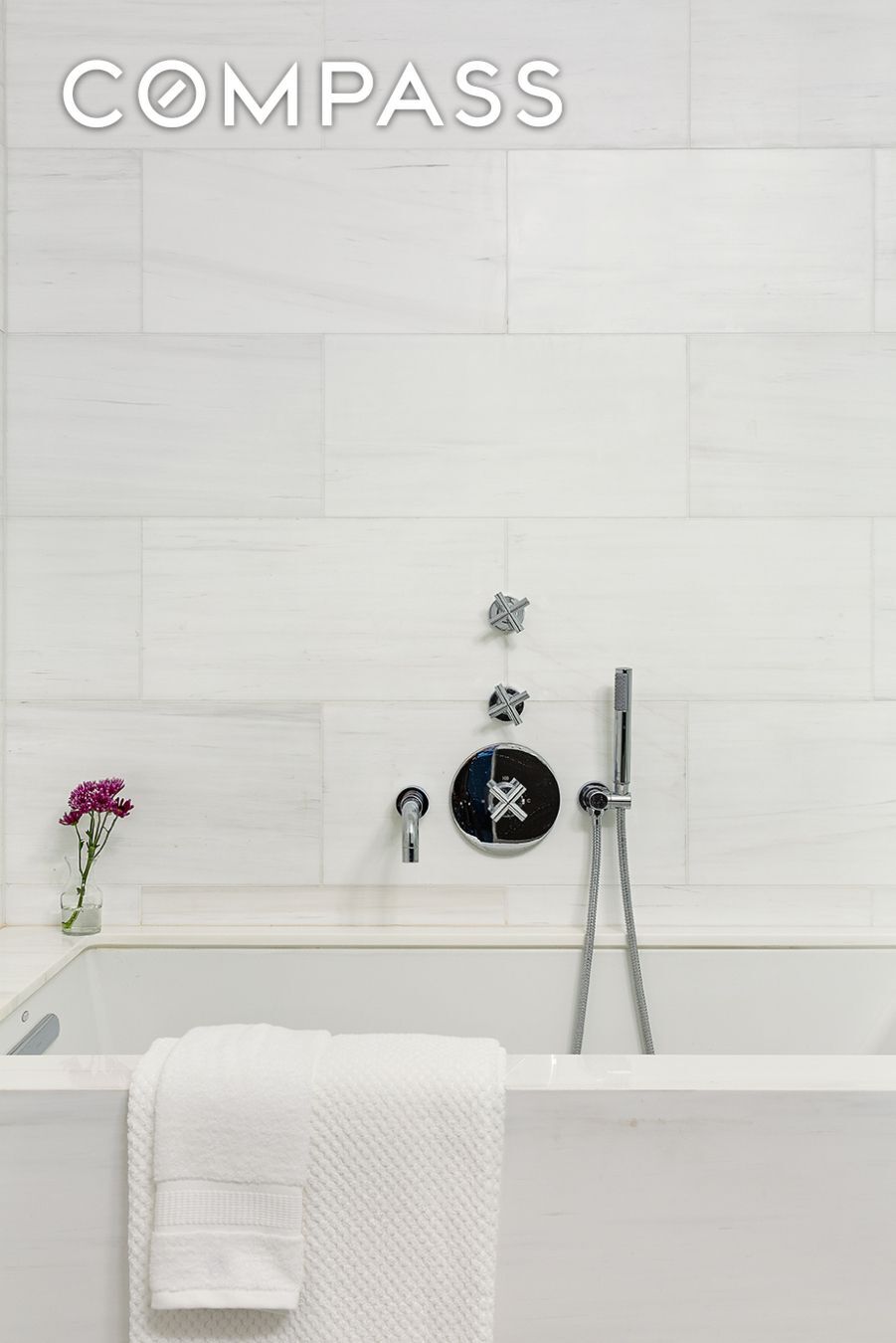 The large bedrooms are set at the quiet rear of the building with northern exposures. In the large primary suite, you'll find a walk-in closet, a remarkable en suite bathroom featuring a double vanity, Kohler deep-soaking tub and separate steam shower, all surrounded by breathtaking Bianco Dolomiti White marble and Lacava polished chrome fixtures. The second bedroom is situated near the equally well-equipped guest bathroom, while an oversized foyer closet and LG stacked, large-capacity washer-dryer add convenience to this flawless home.